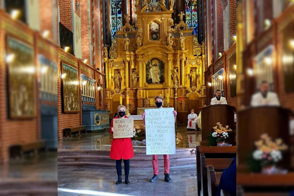 Sytuacja miała miejsce w październiku 2020 r. podczas tzw. czarnych protestów po wyroku Trybunału Konstytucyjnego stwierdzającym niezgodność z Konstytucją przepisu pozwalającego na aborcję eugeniczną. Joanna Scheuring-Wielgus i jej mąż wtargnęli do kościoła św. Jakuba w Toruniu w czasie Mszy świętej. Podczas nabożeństwa stanęli oni przed ołtarzem trzymając transparenty wyrażające aprobatę dla prawa zezwalającego na aborcję.