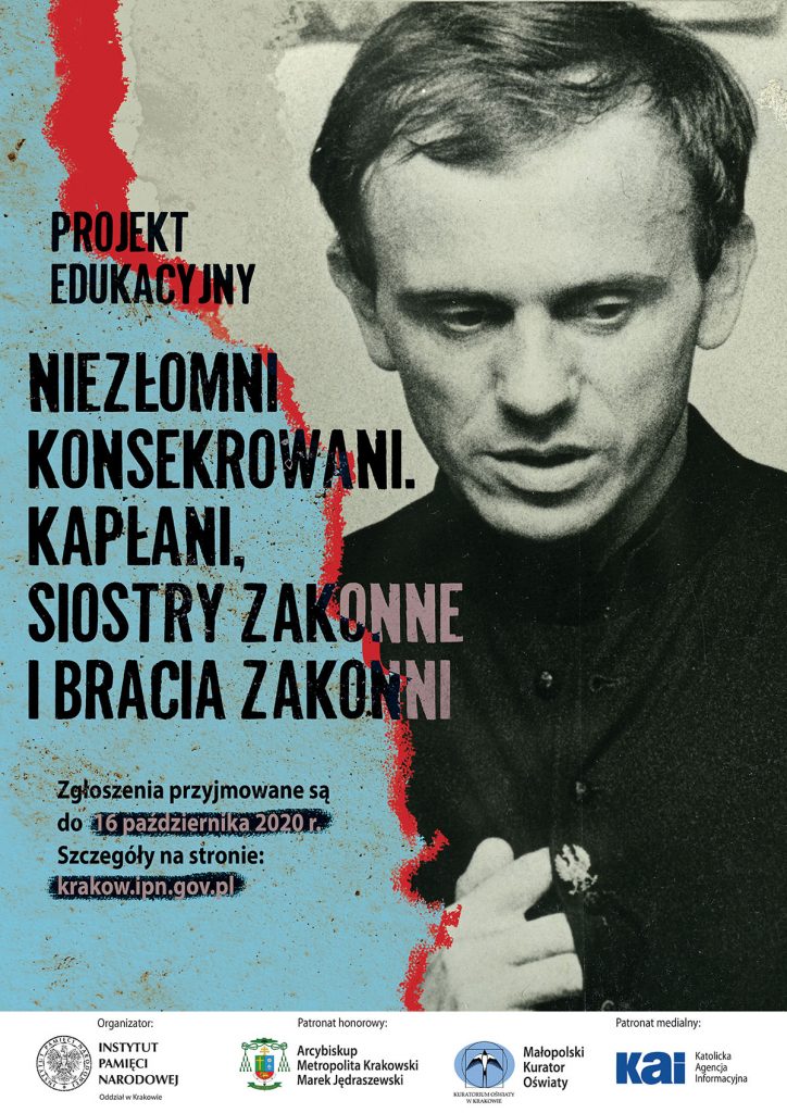 Projekt edukacyjny „Niezłomni Konsekrowani. Kapłani, siostry zakonne i bracia zakonni” odbywa się pod patronatem honorowym Arcybiskupa Metropolity Krakowskiego Marka Jędraszewskiego oraz Małopolskiego Kuratora Oświaty.