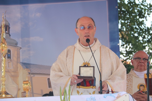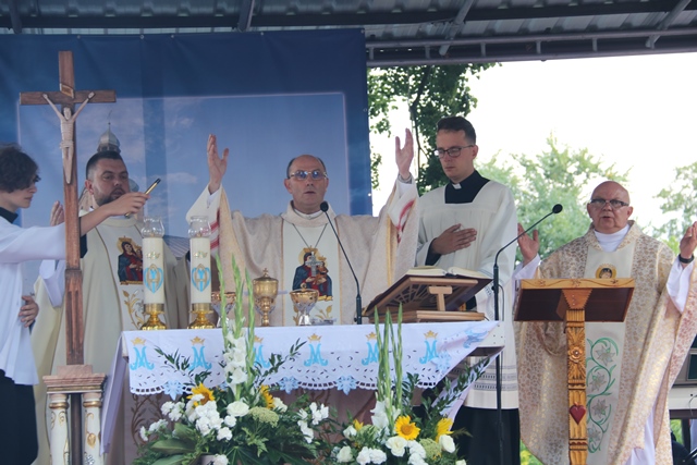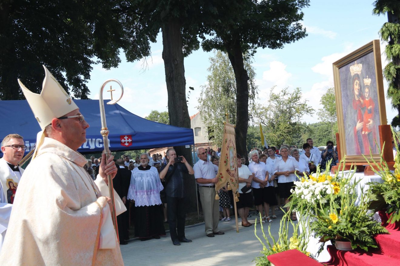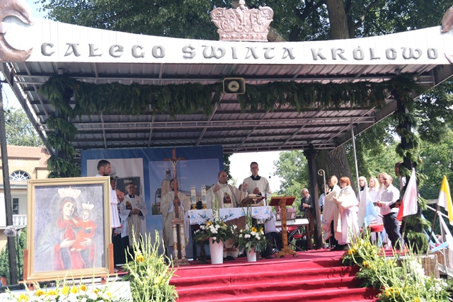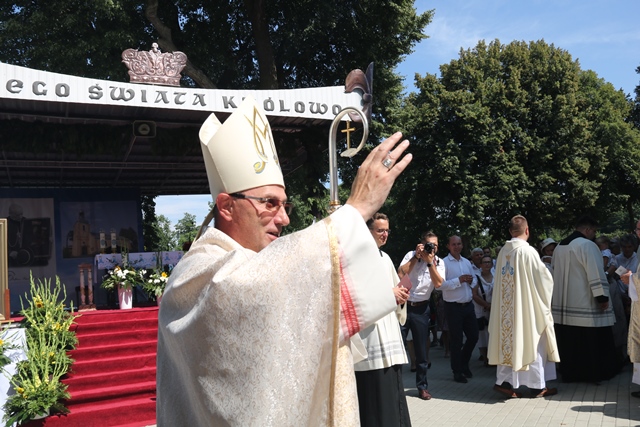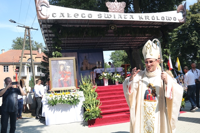 Akcentował, że Matka Boża przypomina nam, że pośród zwyczajnych trudów dnia codziennego idziemy, jak Ona, do nieba. – Dziękujemy dziś przed Bogiem za Maryję. Dziękujemy za Jej drogę do nieba. Dziękujemy za Jej wniebowzięcie. I dziękujemy za Jej obecność tutaj, na tej ziemi, pośród pól i lasów. Dziękujemy i w dniu złotego jubileuszu koronacji Matki Miłościwej, jeszcze raz za Prymasem Tysiąclecia powtarzamy: „niech was prowadzi wasza Matka, Matka Boża Miłująca, łaskawa, wierna Chrystusowi, obecna w Misterium Chrystusa i Kościoła, Prawzór Kościoła Bożego” – powiedział abp Polak.