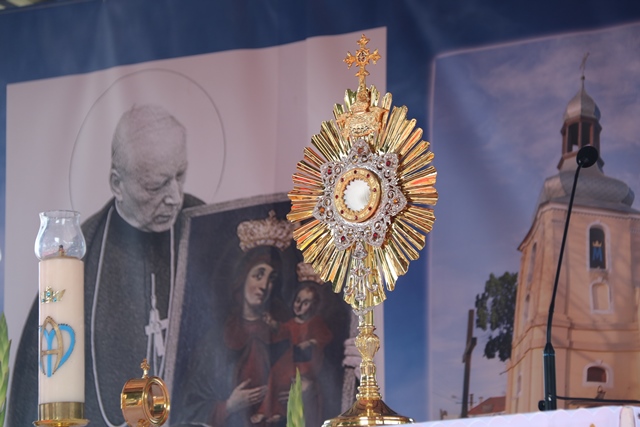 Podkreślał, że Maryja pokazuje nam, że jeśli chcemy, aby nasze życie było szczęśliwe, na pierwszym miejscu trzeba postawić Boga. „Pamiętajmy – przypominał nam pięćdziesiąt lat temu tutaj, w Lutyni, Prymas Tysiąclecia – że rodzinie ludzkiej nie da się odebrać potrzeby patrzenia w niebo, nawet za cenę największych sukcesów na ziemi. Żadne osiągnięcia materialne nie zdołało dotychczas zaspokoić serca ludzkiego” – cytował hierarcha.