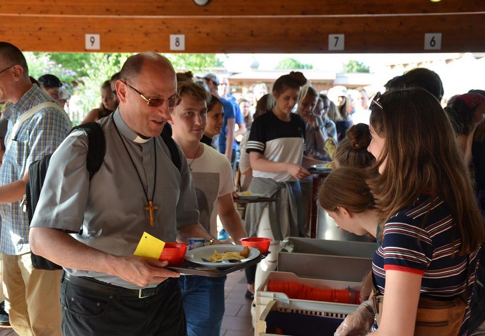 Kolejny ważny punkt dnia to modlitwa południowa, a po niej wspólny obiad wydawany „prosto z kotła”. Po południu krótki odpoczynek i znów wprowadzenie biblijne albo praca na rzecz wspólnoty, czyli sprzątanie, zmywanie, rozładunek żywności, a wszystko w międzynarodowym towarzystwie i dosłownie ze śpiewem na ustach. Gdy mięśnie odpoczywają do pracy ponownie zaprzęga się ducha. Popołudniowe warsztaty to okazja, by na ważne sprawy spojrzeć z innej perspektywy. Prowadzą je duchowni, politycy i specjaliści różnych dziedzin.