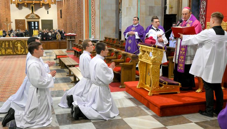 Uroczystość odbyła się w niedzielę 13 marca w katedrze gnieźnieńskiej z udziałem najbliższych i przyjaciół kleryków. Mszy św. przewodniczył rektor Prymasowskiego Wyższego Seminarium Duchownego w Gnieźnie ks. kan. Przemysław Kwiatkowski, a posługi akolitatu udzielił alumnom Prymas Polski abp Wojciech Polak. W krótkiej homilii skierowanej do kandydatów i wszystkich obecnych wskazał na cztery słowa z czytanej chwilę wcześniej Ewangelii o przemienieniu Jezusa, które stanowią klucz i zarazem drogowskaz na drodze służby Bożej.