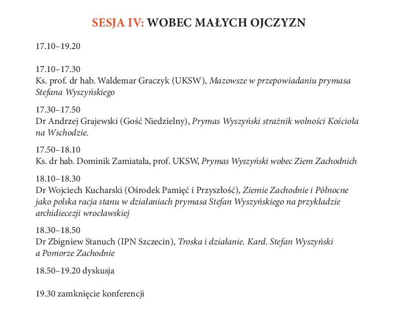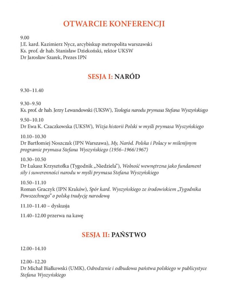 Podczas konferencji „Prymas Wyszyński a niepodległa” przypomniane zostanie nauczanie kardynała Wyszyńskiego na temat patriotyzmu, nacjonalizmu i państwowości. Konferencja odbędzie się w Auli Muzycznej Uniwersytetu Kardynała Stefana Wyszyńskiego, przy ul. Dewajtis 5.
