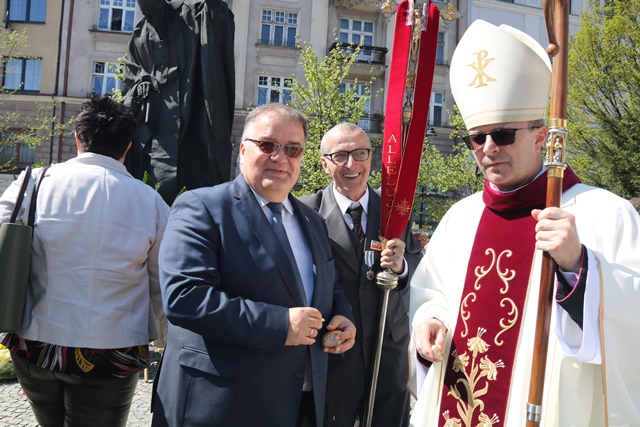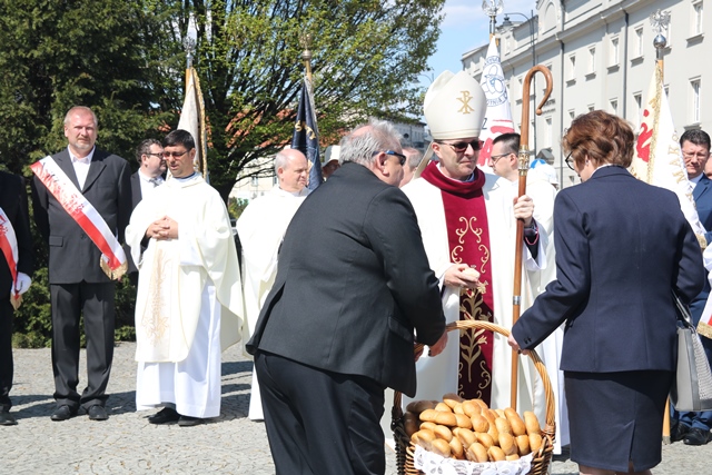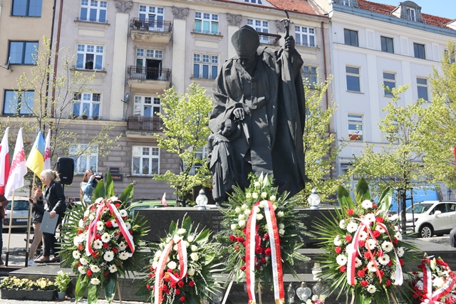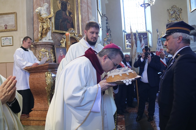 Uroczystość zakończyła się pod figurą św. Jana Pawła II, gdzie odśpiewano „Barkę” i złożono kwiaty. Tradycyjnie już biskup podzielił się chlebem ze zgromadzonymi na uroczystości.