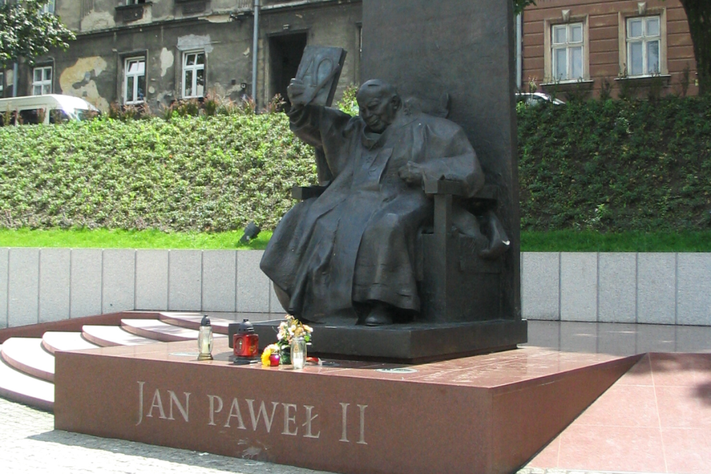 Fot. WikipediaLiczne grono przemyślan zebrało się przy pomniku św. Jana Pawła II w piątek wieczorem na Apelu Jasnogórskim i modlitwie w obronie Papieża Polaka wobec medialnych ataków na jego osobę. – Atakujemy nie tyle papieża, tylko to, z czegośmy wyrośli. Atakujemy Polskę chrześcijańską, katolicką, życzliwą wobec drugiego człowieka – powiedział abp Józef Michalik.