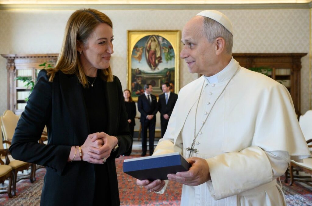 Fot. Vatican MediaPapież Leon XIV przyjął dziś na audiencji przewodniczącą Parlamentu Europejskiego. Roberta Metsola spotkała się również z sekretarzem stanu Stolicy Apostolskiej kard. Pietro Parolinem.