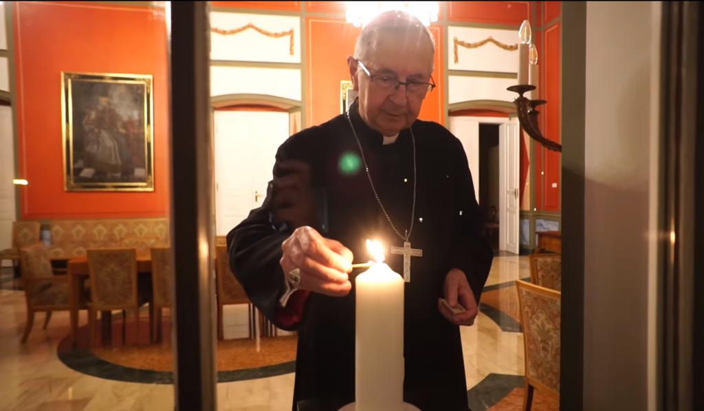 Fot. Konferencja Episkopatu Polski / FBW 42. rocznicę wprowadzenia stanu wojennego w Polsce, 13 grudnia, o godz. 19:30, przewodniczący Konferencji Episkopatu Polski abp Stanisław Gądecki włączył się w akcję społeczną Instytutu Pamięci Narodowej „Zapal Światło Wolności”.