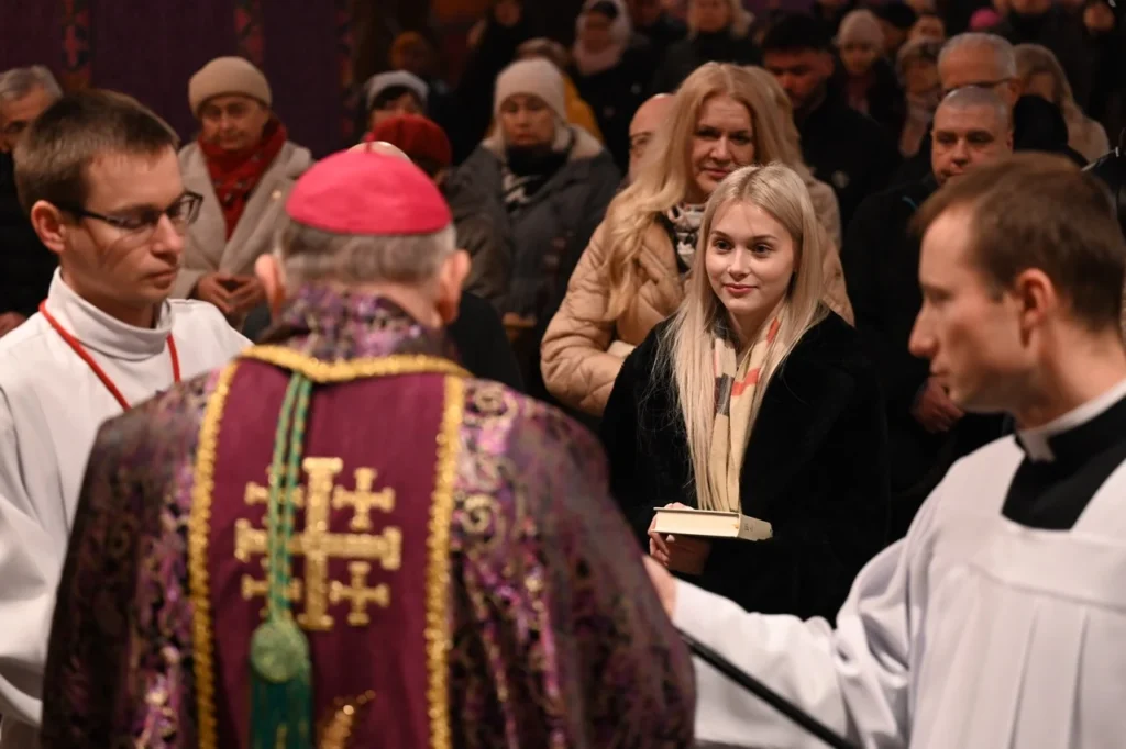 Fot. Marcin Jarzembowski / Biuro Prasowe Diecezji Bydgoskiej„Był to dla mnie ważny, wzruszający, choć pełen stresu moment. Bardzo chciałam swojego wejścia do Kościoła” – podkreśliła Zuzanna, która została przyjęta do grona katechumenów. Obrzęd miał miejsce 6 grudnia w Katedrze św. Marcina i Mikołaja w Bydgoszczy.