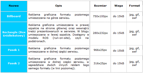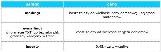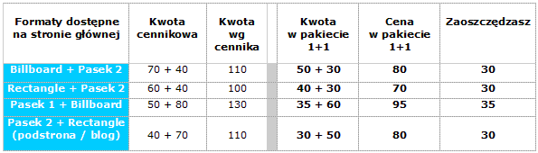 Ceny odnoszą się do kosztu za jeden CPM (1000 odsłon). Kampanie realizowane są powyżej 10 tys. odsłon.