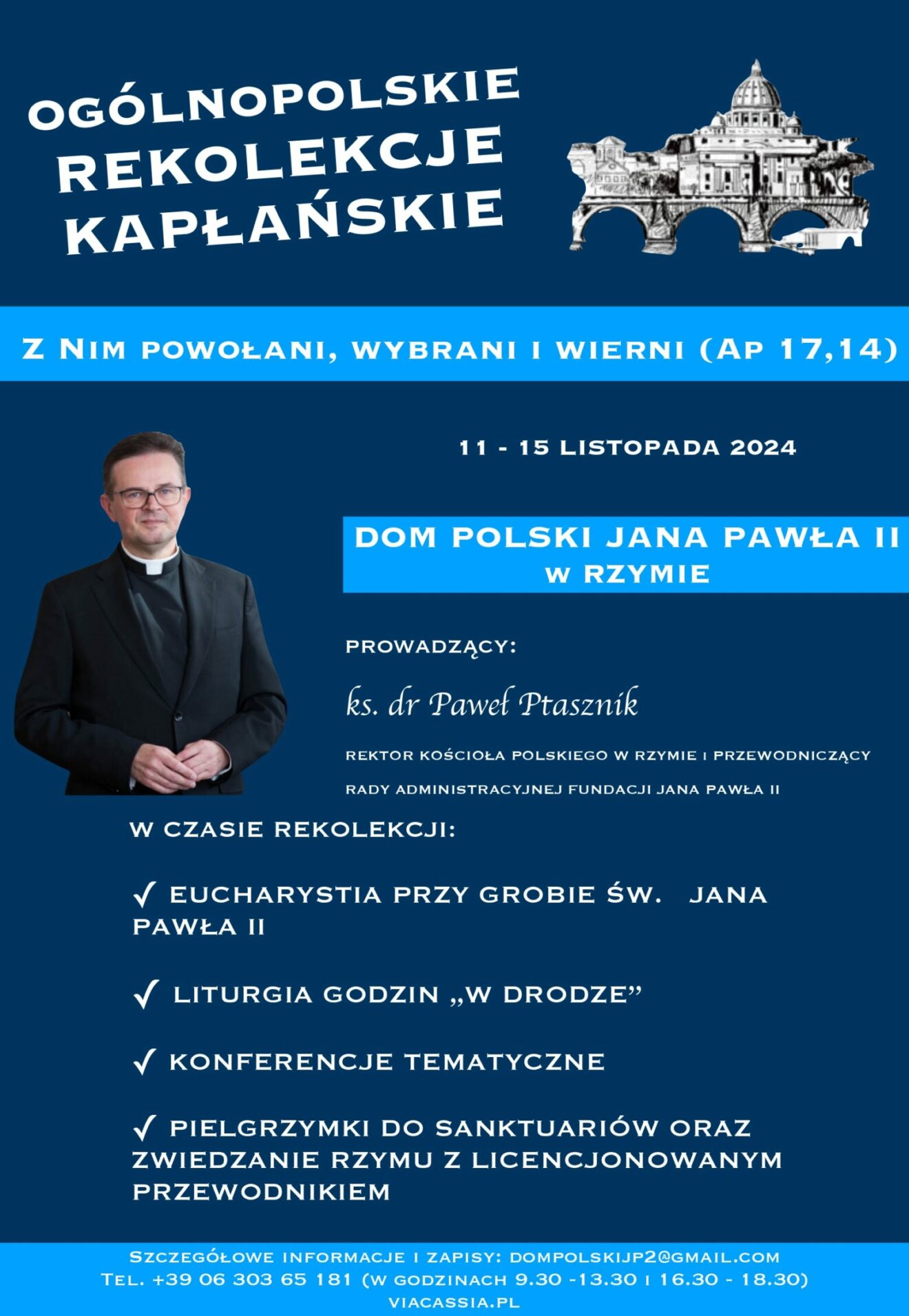 Fot. Agencia Eremo / CathopicCzy pragniesz pogłębić swoją więź z Bogiem i odnaleźć nowe inspiracje w swojej kapłańskiej posłudze? Czy marzysz o wyjątkowym doświadczeniu duchowym, które wzbogaci twoją pracę duszpasterską? – na te i na inne pytania odpowiedzi szukać będą uczestnicy Ogólnopolskich Rekolekcjach Kapłańskich, które odbędą się w Rzymie, w Domu Polskim Jana Pawła II w dniach 11-15 listopada 2024 r. Rekolekcje kapłańskie poprowadzi ks. dr Paweł Ptasznik, przewodniczący Rady Administracyjnej Fundacji Jana Pawła II, rektor Kościoła św. Stanisława Biskupa i Męczennika w Rzymie.