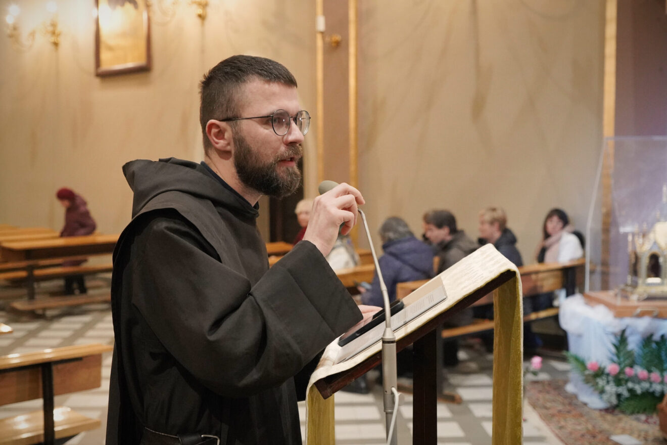 Po liturgii o. Mateusz Filipowski OCD wyjaśniał w konferencji duchową rewolucyjność „małej drogi” – jej zakorzenienie w słabości, ufnym zawierzeniu i miłości przeżywanej w codzienności.