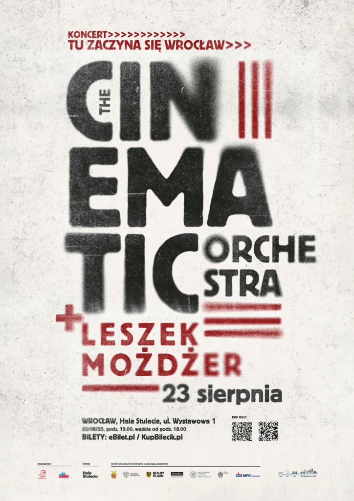 Koncert „Tu zaczyna się Wrocław”: The Cinematic Orchestra i Leszek Możdżer. 23 sierpnia 2025 r., godz.19:00, Wrocław, Hala Stulecia, ul. Wystawowa 1. Bilety są dostępne na ebilet.pl i kupbilecik.pl, a więcej informacji o koncercie oraz artystach można znaleźć na zajezdnia.org i w mediach społecznościowych Centrum Historii Zajezdnia.