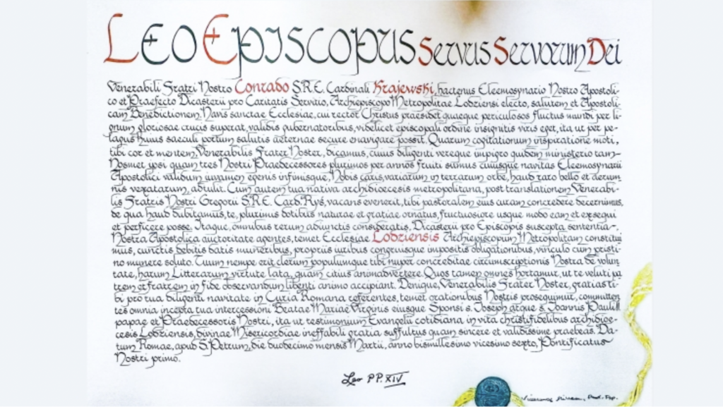 Nowym metropolitą łódzkim został dotychczasowy jałmużnik papieski, pochodzący z Łodzi kard. Konrad Krajewski. Decyzja Ojca Świętego Leona XIV, została podana do publicznej wiadomości w czwartek 12 marca br. Kardynał Konrad Krajewski ma 63 lata, trzynaście lat temu przyjął sakrę biskupią, a osiem lat temu został kreowany kardynałem. Mottem swojej biskupiej posługi uczynił słowa: Misericordia.