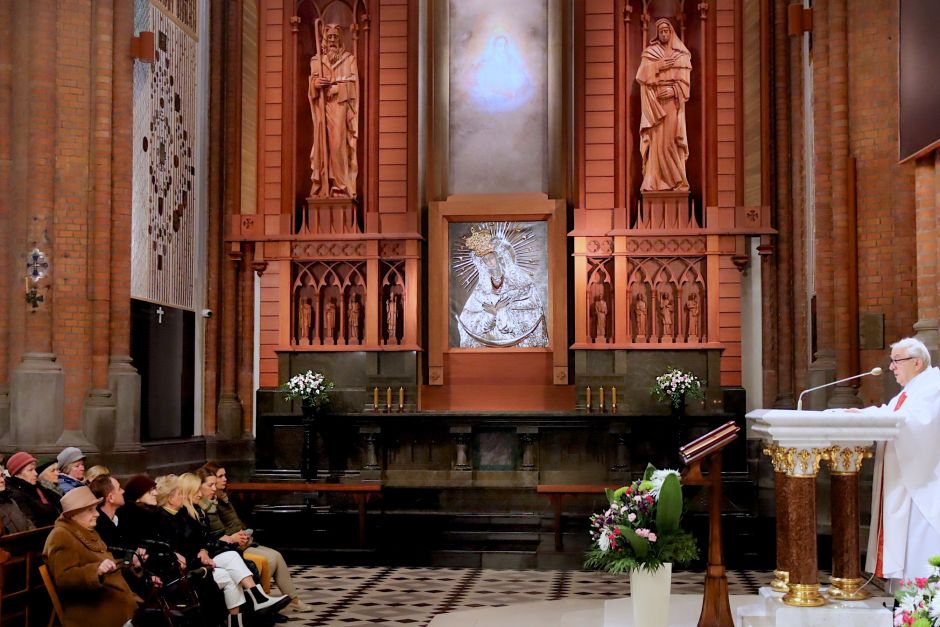 Zauważył, że II wojna światowa i zmiany granic po niej spowodowały wielkie przemieszczanie się ludności, przymusowe i dobrowolne. „Wygnańcy i repatrianci ze wschodnich ziem Polski zanieśli kult Ostrobramskiej Pani do swoich nowych miejsc zamieszkania, a zwłaszcza na Ziemie Odzyskane. Tam budowali kaplice i zawieszali Jej obrazy. Stąd nieraz pielgrzymowali na Jasną Górę, to jednak tęsknili za swoją Wileńską Matką” – zaznaczał.