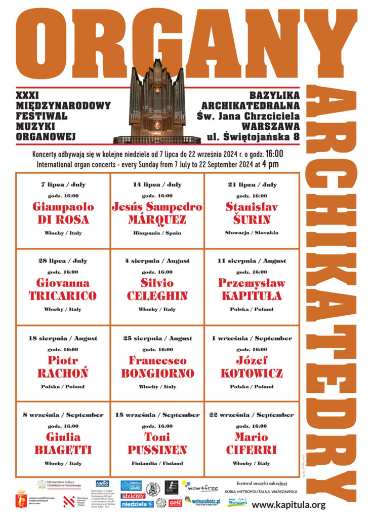 Już w najbliższą niedzielę 7 lipca rozpocznie się XXXI Międzynarodowy Festiwal „Organy Archikatedry”, jedna z najstarszych cyklicznych imprez w stolicy. W kolejne letnie niedziele będzie można posłuchać muzyki organowej w wykonaniu najlepszych europejskich wirtuozów. – Piękne, sakralne wnętrze, najlepsi kompozytorzy, doskonali wykonawcy i wspaniałe katedralne organy – wszystko to gwarantuje wysoki poziom naszego festiwalu – mówi Przemysław Kapituła, kierownik artystyczny wydarzenia.