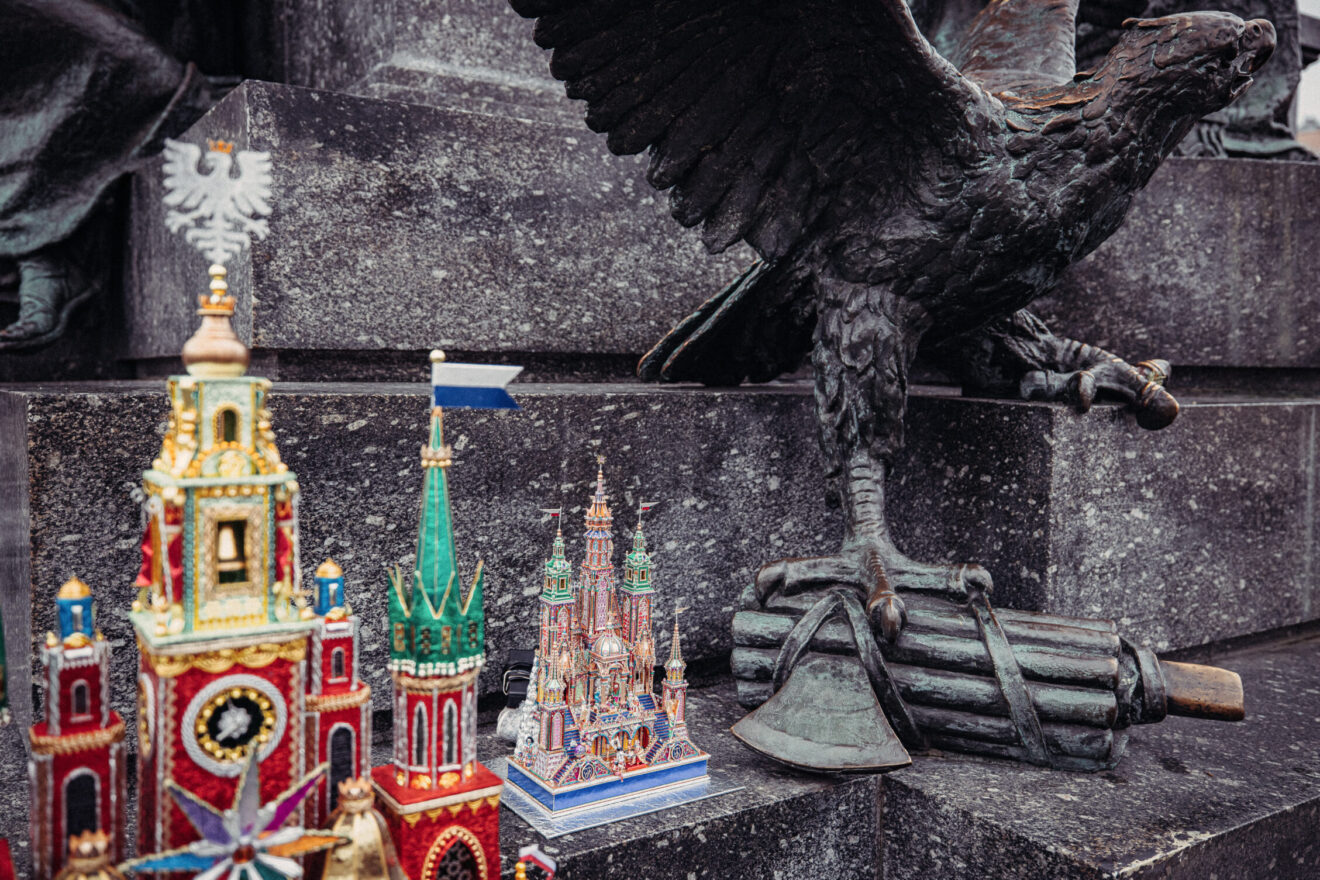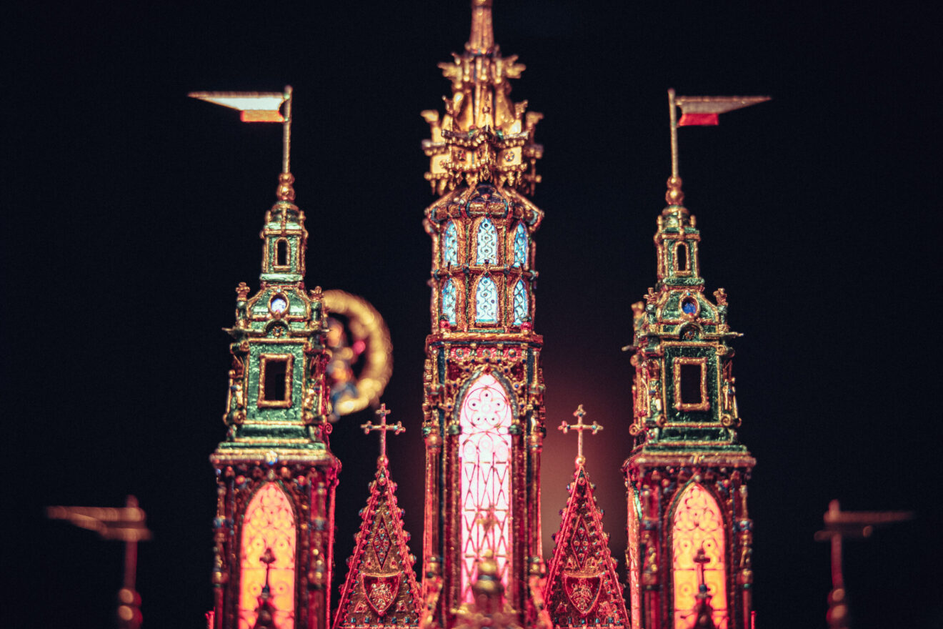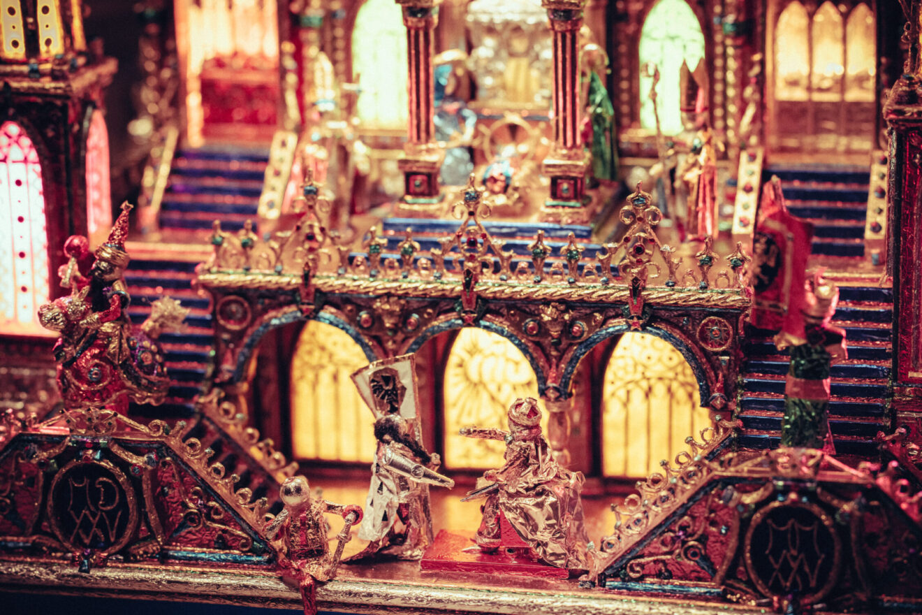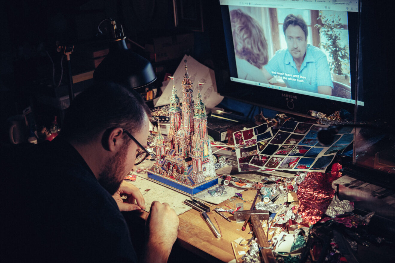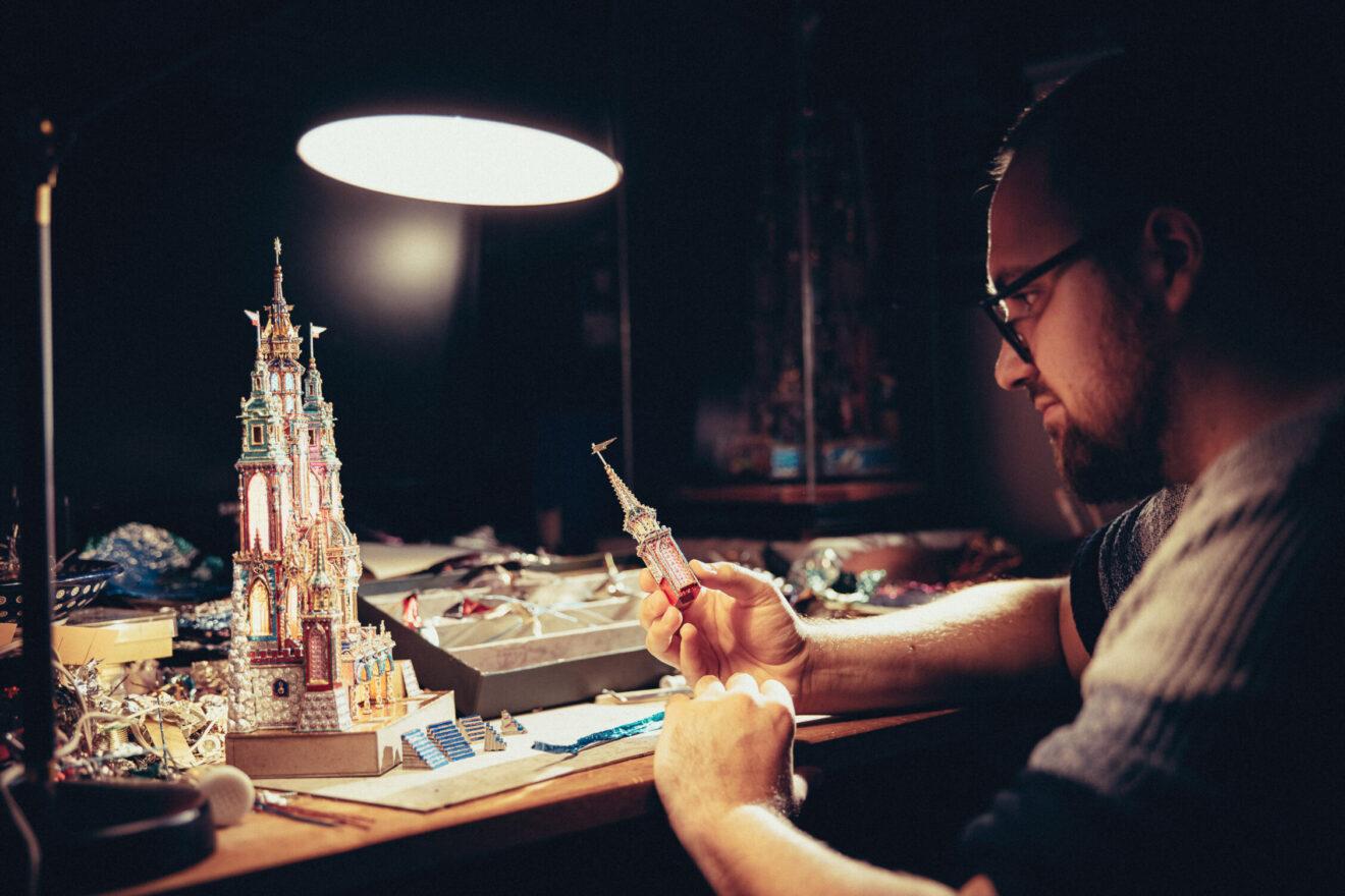 Prezentujemy też galerię zdjęć z pracowni Jakuba Zawadzińskiego, krakowskiego szopkarza. Tegoroczna szopka zawiera elementy architektury katedry wawelskiej, konfesje św. Stanisława, grobowce królewskie.