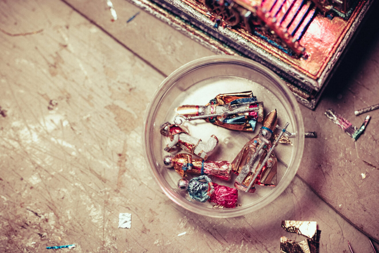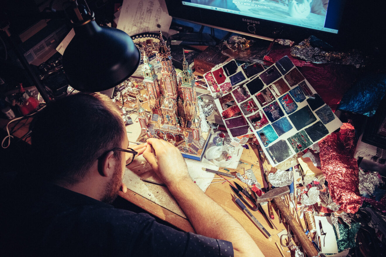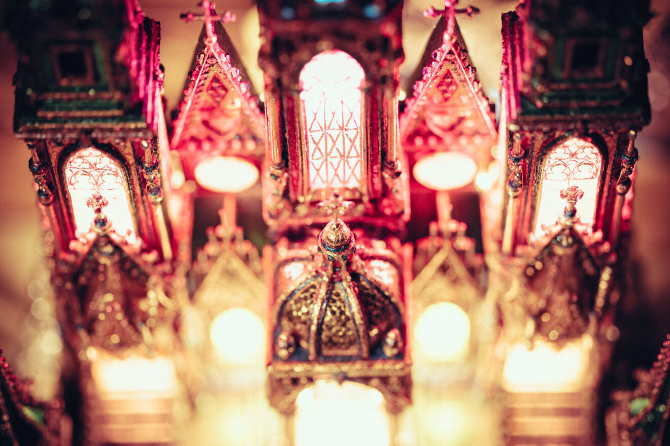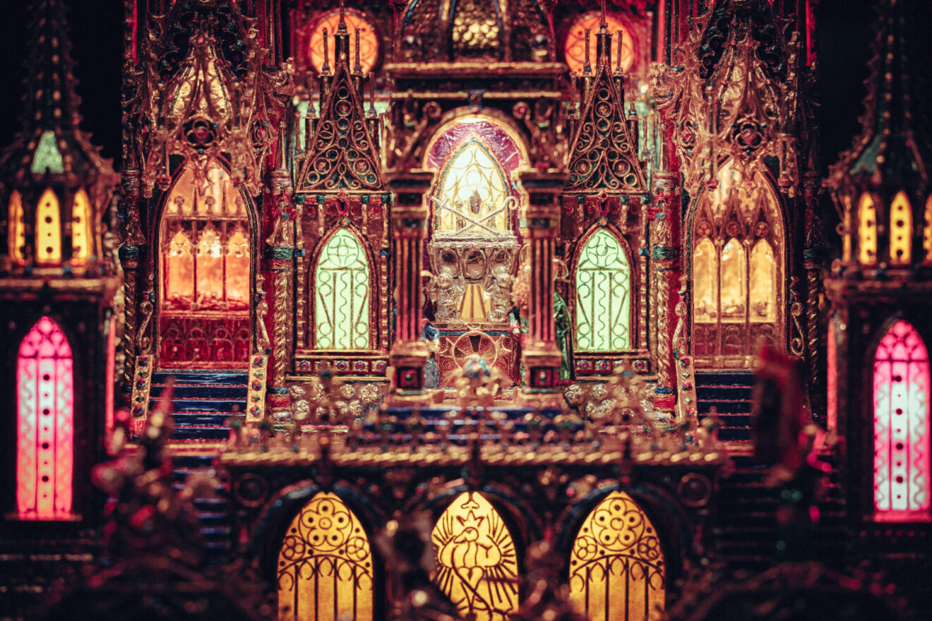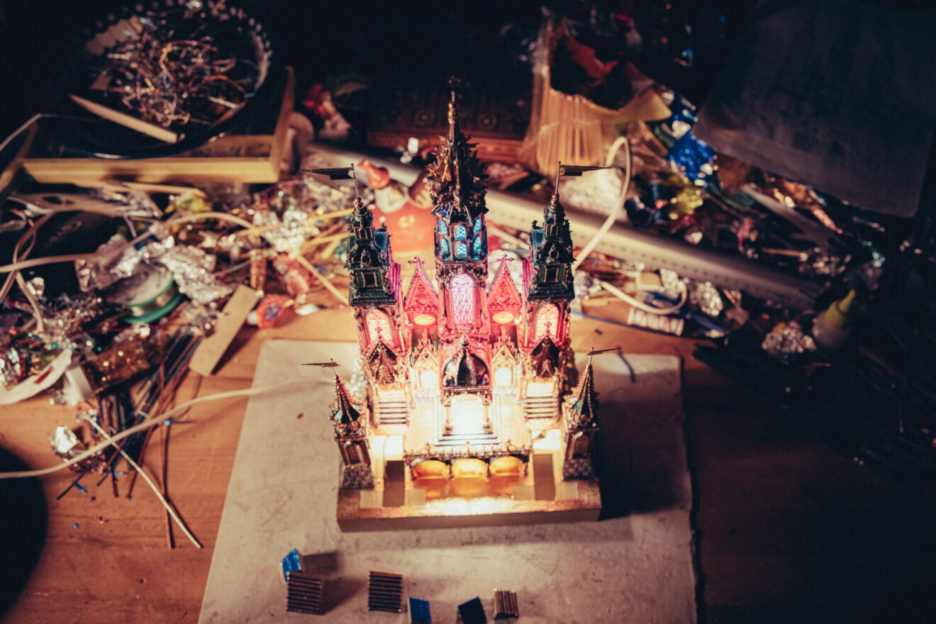 Prezentujemy też galerię zdjęć z pracowni Jakuba Zawadzińskiego, krakowskiego szopkarza. Tegoroczna szopka zawiera elementy architektury katedry wawelskiej, konfesje św. Stanisława, grobowce królewskie.