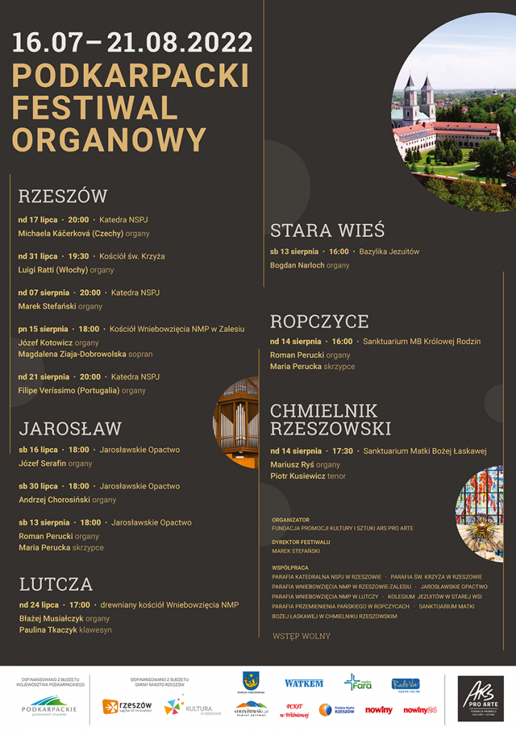 Materiały organizatoraPo raz 32. w podkarpackich świątyniach zabrzmi muzyka. Tegoroczny kalendarz koncertów to sześć miejscowości w różnych częściach południowo-wschodniej Polski, dwanaście muzycznych wieczorów oraz trzynastu artystów, którzy zechcą podzielić się z podkarpacką publicznością swoją sztuką. Festiwal zainauguruje w sobotę, 16 lipca organista Józef Serafin, który wystąpi z recitalem w Opactwie w Jarosławiu. Festiwal potrwa od 16 lipca do 21 sierpnia. Koncerty odbywają się w Rzeszowie, Jarosławiu, Lutczy, Starej Wsi, Ropczycach i Chmielniku Rzeszowskim.