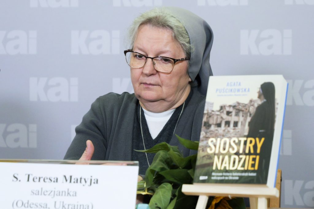 Fot. Alicja Kościesza (KAI)„Wiem, że jestem tu potrzebna. Czuję się spełniona i szczęśliwa. Robię to, do czego wezwał mnie Bóg” – napisała w liście do autorki s. Jonasza, pracująca w Czarnomorsku na Ukrainie. W czwartek w Warszawie odbyła się promocja książki Agaty Puścikowskiej „Siostry nadziei”, przedstawiająca posługę sióstr zakonnych na Ukrainie w czasie toczącej się wojny. Na promocji były obecne dwie bohaterki książki: salezjanka s. Teresa Matyja z Odessy i elżbietanka s. Alicja Jonasza Bukowska z Czarnomorska.