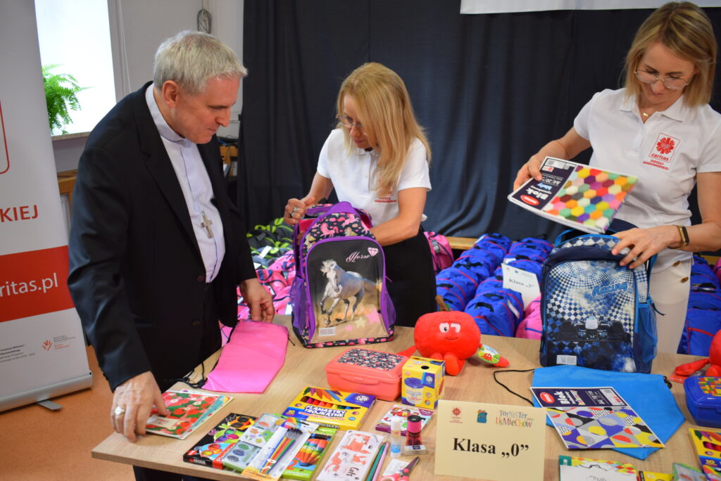 – W tych plecakach znajduje się prawie wszystko, czego potrzebujecie w szkole, a razem z plecakami będzie wam towarzyszyła nasza miłość i modlitwa. W ten sposób będziemy sobie stale bliscy. Starajcie się być jednocześnie dobrzy dla innych osób, wtedy ten krąg dobroci zostanie poszerzony – mówił biskup.
