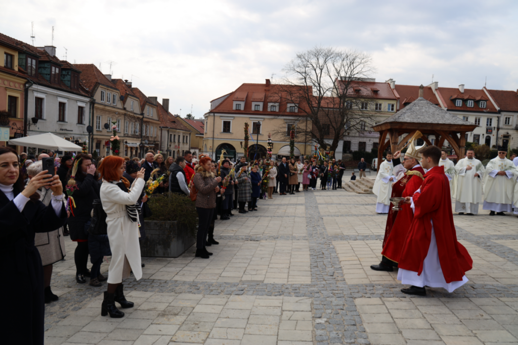 Fot. Diecezja SandomierskaLiturgia Niedzieli Palmowej w Sandomierzu zainaugurowała obchody Wielkiego Tygodnia. Uroczystości, którym przewodniczył bp Krzysztof Nitkiewicz, zgromadziły licznych wiernych na rynku Starego Miasta oraz w bazylice katedralnej.
