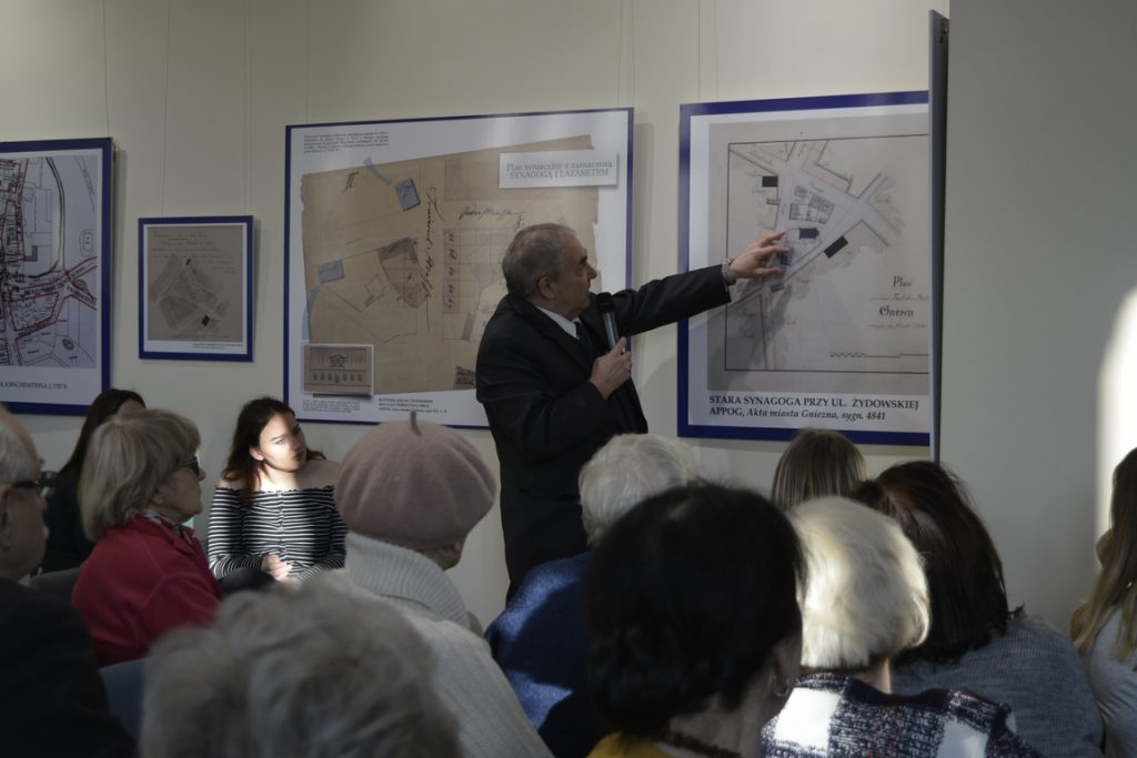 Prelekcjom towarzyszyła wystawa poświęcona dokumentacji własności gminy żydowskiej przed II wojną światową oraz obrazowi gnieźnieńskiej społeczności żydowskiej w XIX i na początku XX wieku. Można zobaczyć m.in. plany ulic dawnego Gniezna z zaznaczonymi miejscami należącymi do gminy żydowskiej, a także usytuowanie synagogi, szkoły i cmentarzy. Całość ilustrują scany zachowanych zdjęć archiwalnych.