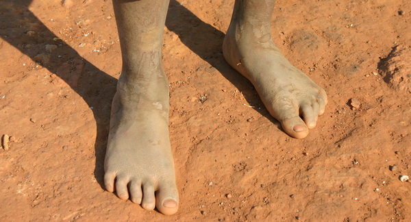 Dziecięce stopy, odczytuję je codziennie. Opowiadają więcej niż niejedna książka przygodowa. Mówią o drodze, o pracy od wschodu słońca, radości i bólu. Trosce rodziców, biedzie lub zaniedbaniu. Droga rzeźbi stopy. Stopy zostawiają ślady na drodze.