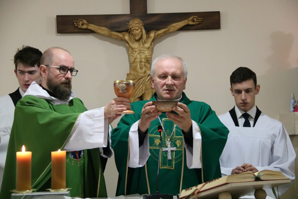 Z biskupem pomocniczym Łukaszem Buzunem Mszę św. koncelebrowali: ks. Łukasz Skoracki, zastępca dyrektora Caritas Diecezji Kaliskiej i zarazem kierownik placówki w Słupi pod Kępnem, ks. Dariusz Kuliński i ks. Paweł Rybak, prefekci roku propedeutycznego w kaliskim seminarium.