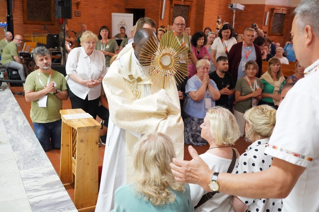 Fot. Wiesław Kajdasz / Biuro Prasowe Diecezji BydgoskiejW bydgoskiej Bazylice Mniejszej Królowej Męczenników 8 i 9 lipca odbywają się spotkania otwarte z o. Johnem Bashoborą, ugandyjskim kapłanem katolickim, charyzmatykiem i doktorem teologii duchowości. – Dzięki naszemu świadectwu, inni będą doświadczać, że tylko Bóg może nas uzdrowić – mówił podczas jednego ze spotkań o. John Bashobora. Organizatorem spotkań pod hasłem „Jezus żyje! A kto Go dotknął, odzyskiwał zdrowie” jest wspólnota Odnowy w Duchu Świętym „Przemienienie”.