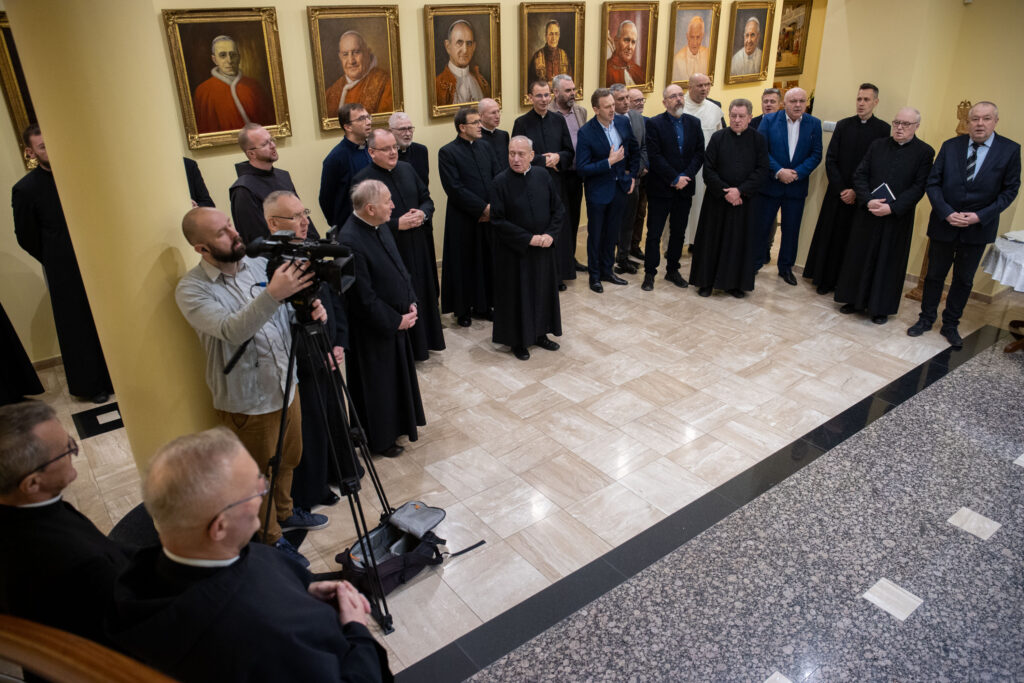 Fot. ks. Paweł KłysMetropolita łódzki kard. Grzegorz Ryś wraz z arcybiskupem seniorem i biskupami pomocniczymi spotkał się dziś z kapłanami i osobami konsekrowanymi na bożonarodzeniowym opłatku.