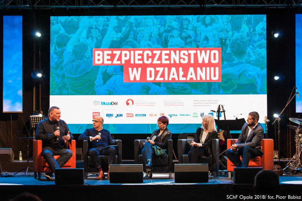 Strefa Chwały Festiwal – Bezpieczeństwo w działaniu otworzyło muzyczne uwielbienie z zespołem Strefa Chwały Festiwal. Po oficjalnym przywitaniu gości i uczestników konferencji przez Jana Pospieszalskiego, o. Andrzeja Bujnowskiego oraz Andrzeja Dubiela miał miejsce spektakl poetycki Jeszcze słowo… w wykonaniu Dariusza Kowalskiego. Poezji C. K. Norwida towarzyszyła lira korbowa, na której zagrał Joachim Mencel. Kolejnym punktem programu była prezentacja platformy internetowej i aplikacji mobilnej Metobank – Banku Metod Profilaktycznych, będących bazą ekspertów, filmów edukacyjnych, materiałów dydaktyczno-metodycznych, konspektów metod przeciwdziałania przyczynom przestępczości oraz centrum teleadresowym wszystkich placówek, instytucji, stowarzyszeń́ i fundacji zajmujących się̨ zwalczaniem przemocy. Zbiór informacji utworzono przy współpracy z pedagogami i specjalistami, z których część uczestniczyła w panelu dyskusyjnym Bezpieczeństwo w działaniu. Rozmowę z Anną Marią Wesołowską, Urszulą Melą, Andrzejem Kocem i Jackiem Wroną moderował Jan Pospieszalski.