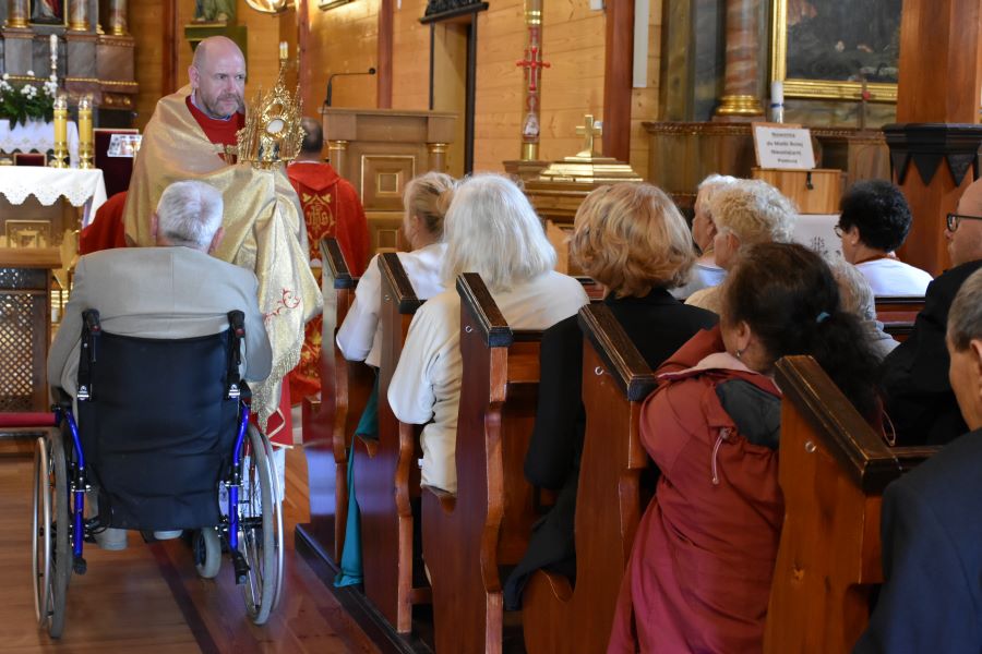 W homilii ks. Przemysław Zamojski mówił o odkrywaniu wartości Eucharystii, zwłaszcza w czasie zmagań z chorobą. Przypomniał, że lipiec jest miesiącem poświęconym czci Krwi Chrystusa, przez którą „stało się nam zbawienie”.