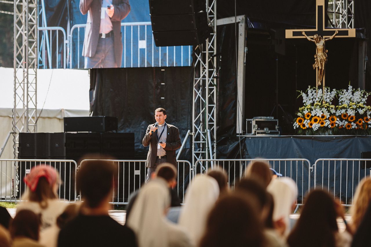 Prelegentem podczas porannej konferencji był bowiem o. prof. Andrzej Jastrzębski, misjonarz oblat i wykładowca Uniwersytetu św. Pawła w kanadyjskiej Ottawie, który prowadzi interdyscyplinarne badania nad integralnym ujęciem człowieka filozofii, teologii, psychologii i neurobiologii. Podczas konferencji, jakiej przed główną sceną słuchał już komplet festiwalowiczów, podejmował temat bycia oryginalnym, łącząc wątki z życia św. Jana Chrzciciela, który jest postacią przewodnią tegorocznego festiwalu, z fragmentami „Gwiezdnych Wojen”.