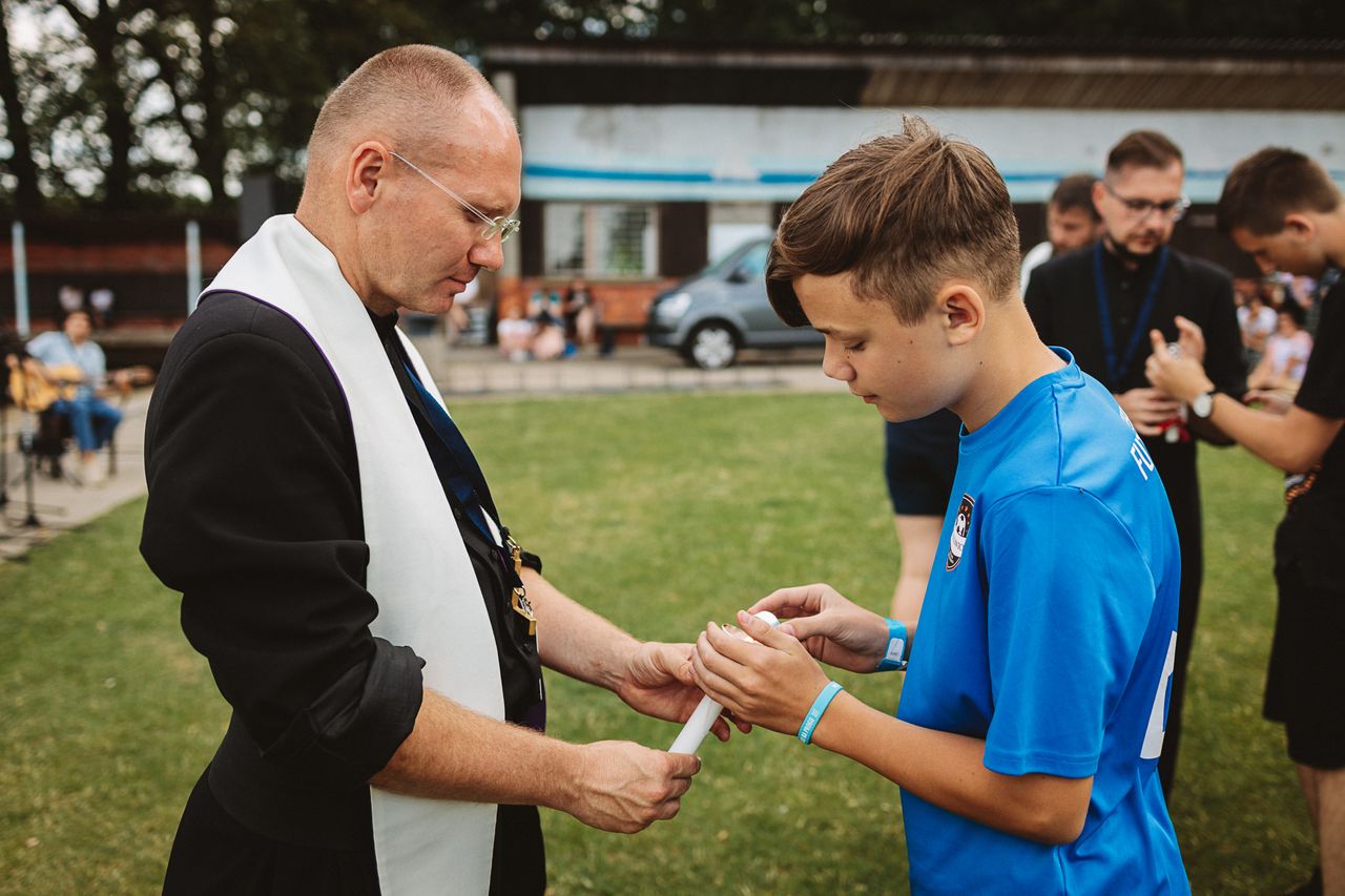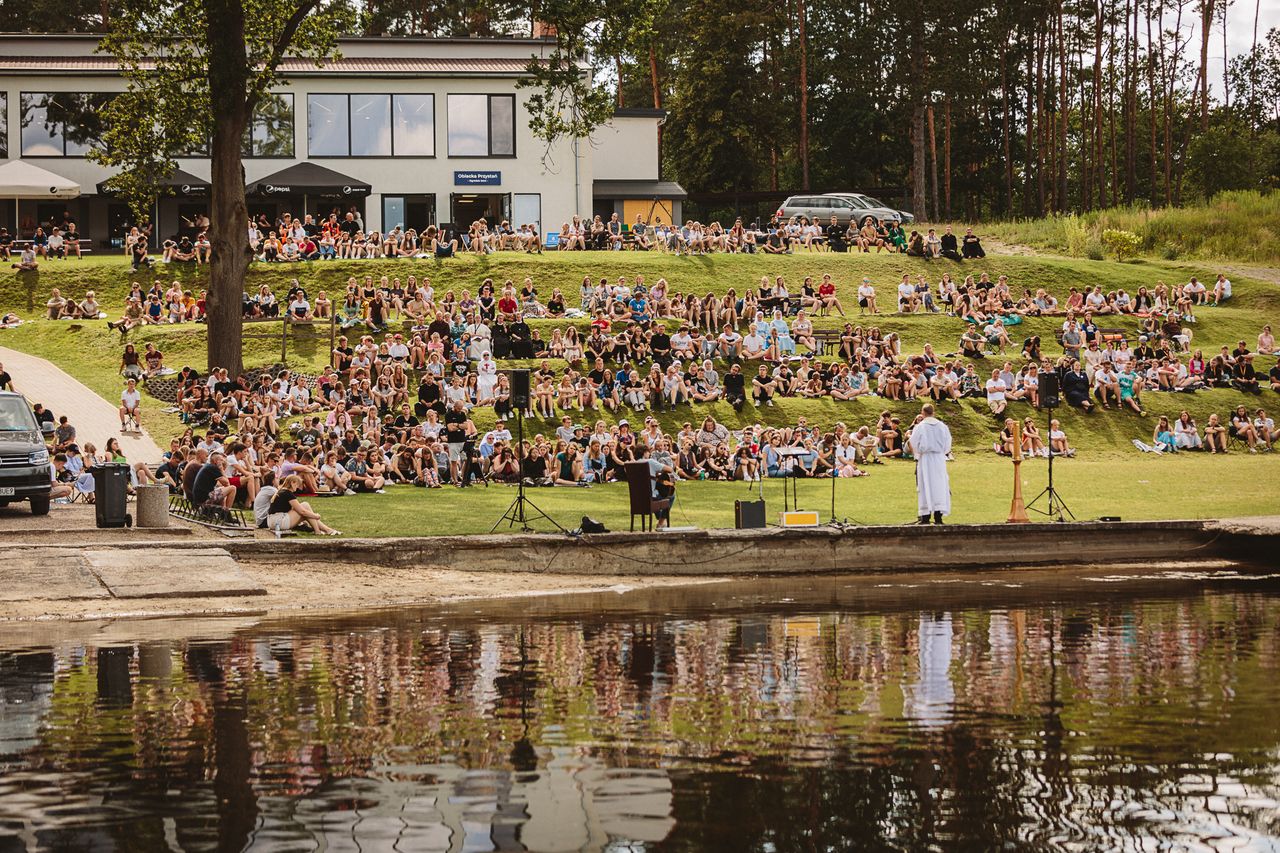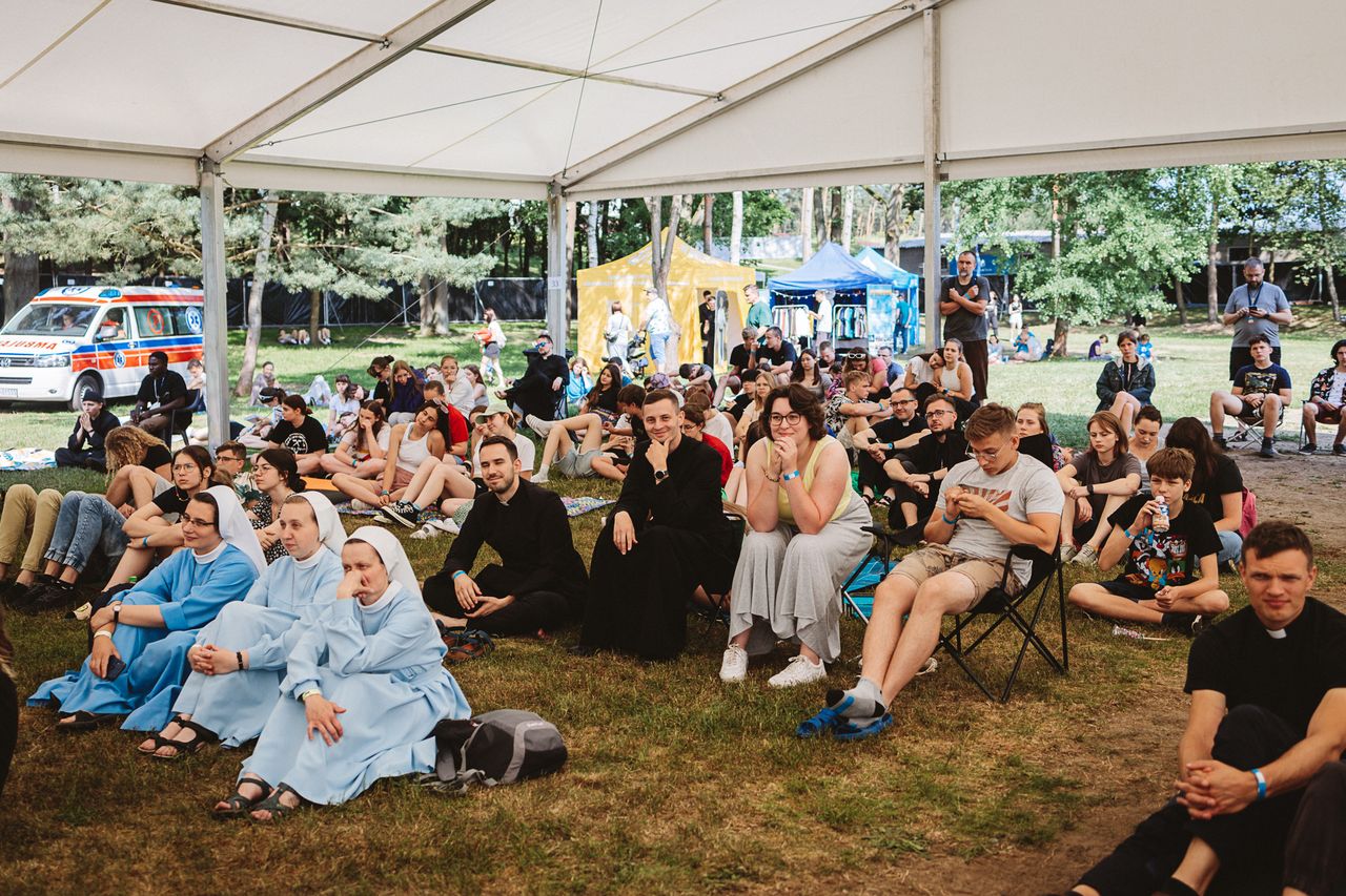 Po południu uczestnicy festiwalu wzięli udział w pierwszych warsztatach, jakie wybrali spośród kilkudziesięciu propozycji, poruszającym nabożeństwie ognia na plaży nad stawem Posmyk oraz Mszy św., której przewodniczył bp Waldemar Musioł z diecezji opolskiej.