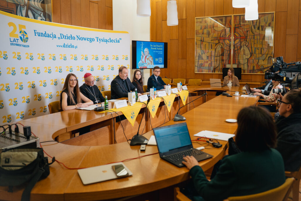 Fot. Monika Wójcik / FDNT– To dzieło nie okazało się chwilową inicjatywą, ale nabrało poważnego charakteru. To tysiące osób, które skorzystały z pomocy fundacji – podkreślił abp Adrian Galbas SAC podczas dzisiejszej konferencji zapowiadającej XXV Dzień Papieski. W tym roku obchodzony będzie on 12 października pod hasłem: „Św. Jan Paweł II. Prorok nadziei”. Wydarzenie co roku przypomina o duchowym dziedzictwie Papieża Polaka i staje się okazją do modlitwy, refleksji oraz wsparcia programu stypendialnego dla młodzieży poprzez zbiórkę prowadzoną przez Fundację „Dzieło Nowego Tysiąclecia”. W ciągu roku FDNT wspiera blisko 2100 stypendystów.
