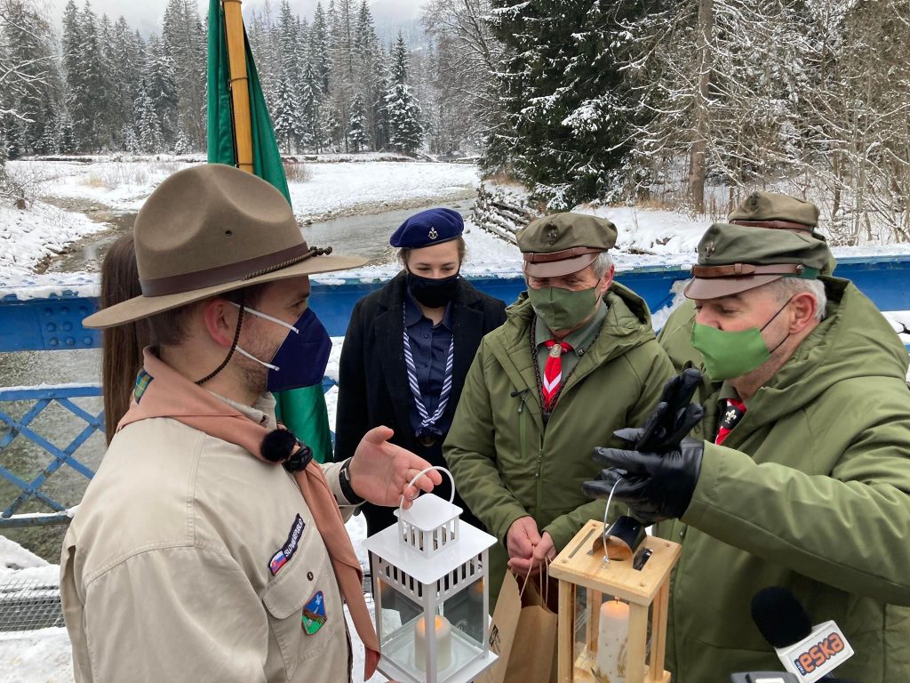 Fot. Jan GłąbińskiNa granicy polsko-słowackiej na dawnym przejściu granicznym w Łysej Polanie 12 grudnia słowaccy skauci przekazali polskim harcerzom Betlejemskie Światełko Pokoju, które zostało zapalone w Grocie Betlejemskiej. Uroczystości miały miejsce najpierw na przejściu granicznym w Łysej Polanie, a potem w Ośrodku na Głodówce, dokąd Światełko Betlejemskie przynieśli reprezentacje poszczególnych harcerskich chorągwi z całego kraju. Druhowie wzięli też udział w uroczystej Mszy św., po której udali się ze Światełkiem Betlejemskim w rejon całej Polski.