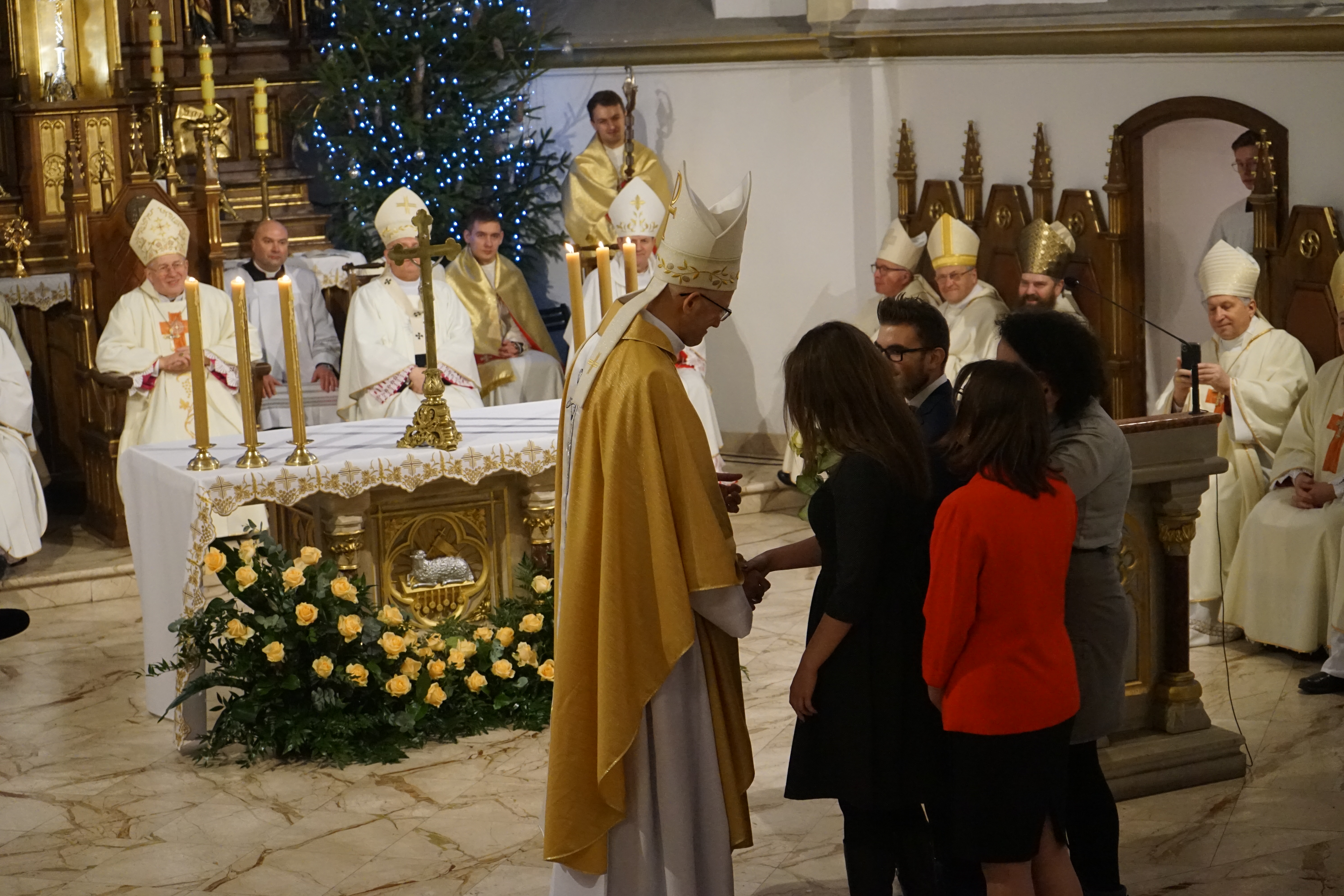 Po zakończeniu liturgii słowa gratulacji i życzenia przekazali konsekratorzy i delegaci. Abp Salvatore Pennacchio, nuncjusz apostolski w Polsce życzył, aby pokój Chrystusa był wyznacznikiem służby bp Galbasa. „Masz budować jedność. Będziesz biskupem pomocniczym, czyli masz pomagać swojemu biskupowi, kapłanom i wiernym w diecezji. Nie odkładaj, bierz się od razu do pracy” – mówił nuncjusz apostolski.