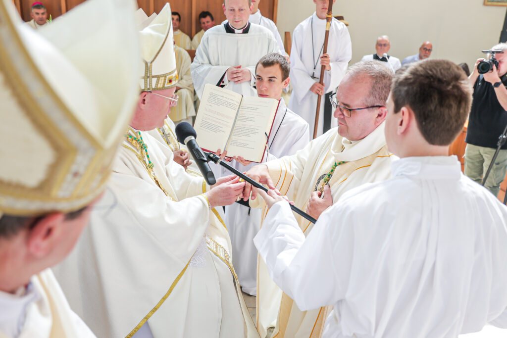 Nowo wyświęcony biskup został namaszczony krzyżmem – świętym olejem, który jest znakiem szczególnego udziału w kapłaństwie Chrystusa i w misji uświęcania Ludu Bożego.