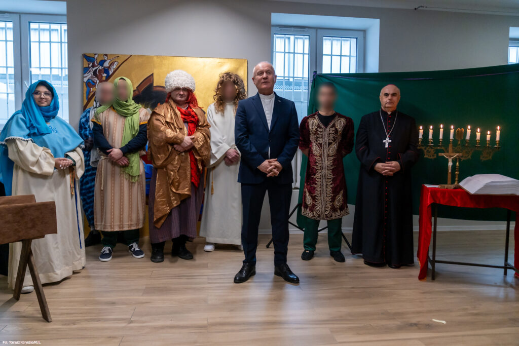 Fot. Ludmyła WillowaŚwiętowanie Bożego Narodzenia w Areszcie Śledczym w Lublinie rozpoczęło się spotkaniem opłatkowym z udziałem biskupa Adama Baba oraz rektora Katolickiego Uniwersytetu Lubelskiego, ks. prof. Mirosława Kalinowskiego. W wydarzeniu uczestniczyli zarówno osadzeni kształcący się w Centrum Studiów KUL przy Areszcie Śledczym, jak i studenci z wolności.