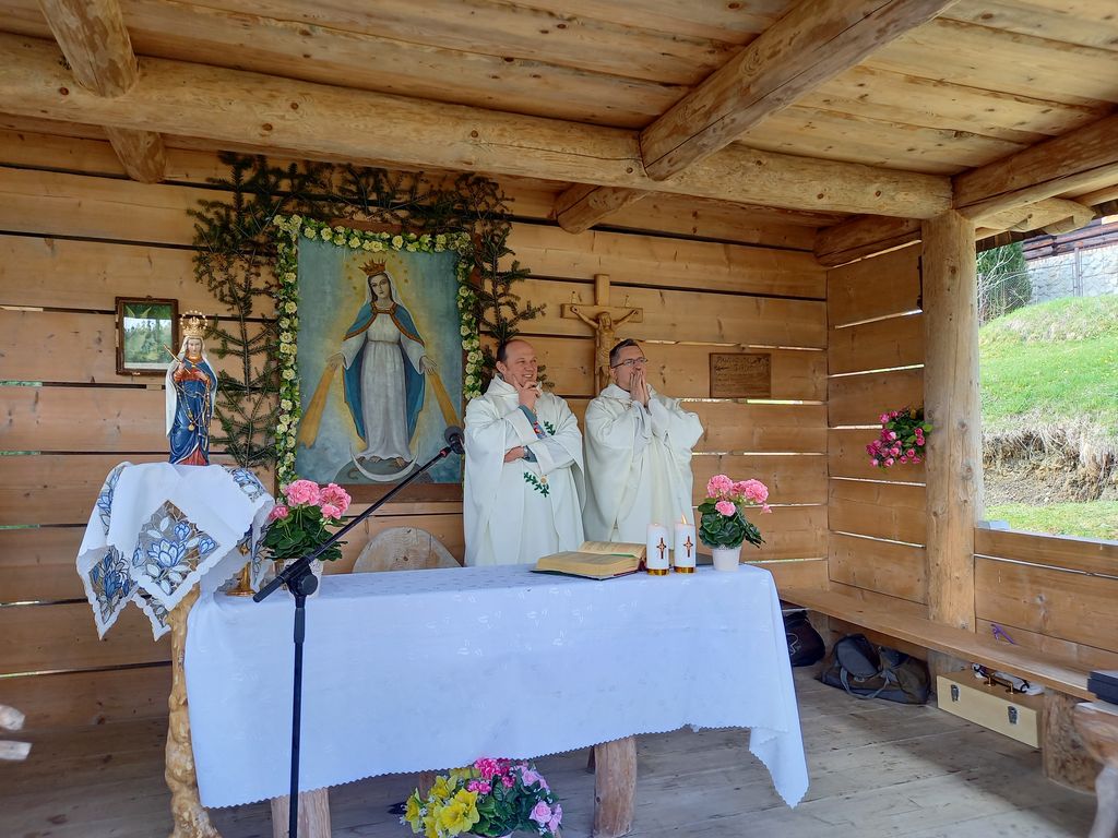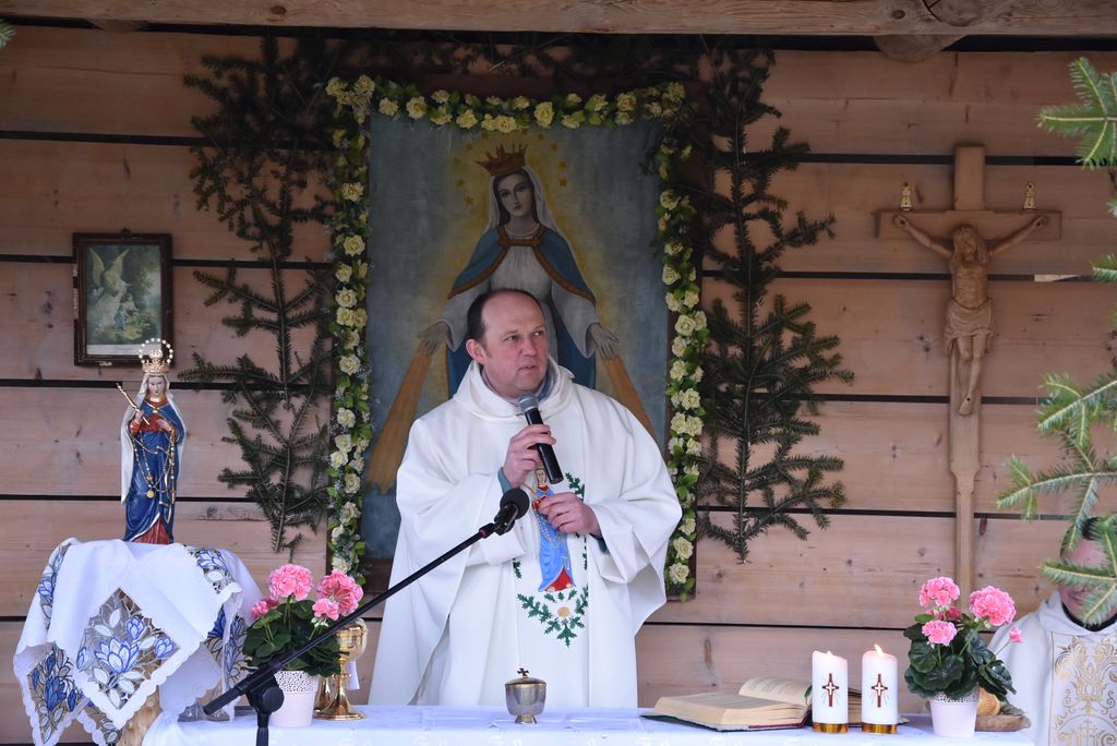 Uroczystą Mszę św. w kaplicy na Tarasówce, skąd rozpościera się piękny krajobraz na Tatry, odprawił dominikanin o. Mateusz Jacukiewicz. – Z tej ładnej polany na Tarasówce rozciąga się wciąż jeszcze piękny choć zimowy krajobraz. Śnieg nie daje nam zapomnieć o sobie. Jednak w tej aurze stajemy przed Matką Boską z naszymi słabościami i podziałami. Nie ma innej drogi, aby prosić o nawrócenie, o Boże Miłosierdzie, jak tylko przez Niepokalaną. Prośmy w swoich sercach jak najgłębiej i bardzo szczerze o przebaczenie – mówił o. Jacukiewicz.