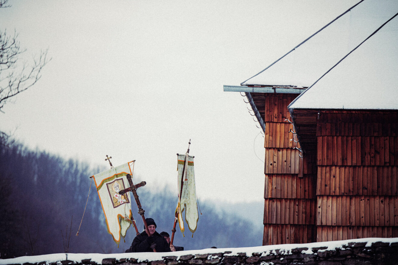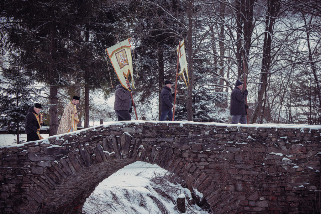 Po skończonym nabożeństwie w cerkwi wierni w barwnej procesji prowadzonej przez księdza udają się nad rzeki i strumienie. Tego dnia woda ma mieć właściwości cudowne, a samo święto stanowi początek czasu, w którym duchowni odwiedzają domy parafian. Na czele procesji mężczyźni niosą chorągwie cerkiewne i krzyż z wizerunkiem Ukrzyżowanego. Kapłan po odmówieniu modlitwy do Ducha Świętego trzykrotnie zanurza w wodzie wielki, złocony krzyż i trzy płonące świece — symbol Trójcy Świętej. Ceremonii tej towarzyszy hymn liturgiczny zaczynający się od słów: W Jordanie, chrzczącemu się Tobie, Panie, ukazała się cześć Przenajświętszej Trójcy. Zanurzenie krzyża symbolizuje wierność i oczyszczenie, a świecy – Trójcę Przenajświętszą, która po raz pierwszy objawiła się w czasie chrztu Chrystusa. Niekiedy podczas święcenia wody wierni wypuszczają gołębie — znak Ducha Świętego. Obrzęd kończy się pokropieniem wodą poświęconą w rzece. Kapłan odchodzi. Odprowadza go bractwo cerkiewne z chorągwiami i świecami oraz grupa wiernych. Uczestniczący w święcie Jordanu nabierają wody do butelek i różnych pojemników, którą następnie zanoszą do domu. W ciągu roku poświęcona w ten sposób woda jest używana do praktyk religijnych. W przeszłości służyła jako lek i środek mający oddalić czary i uroki.