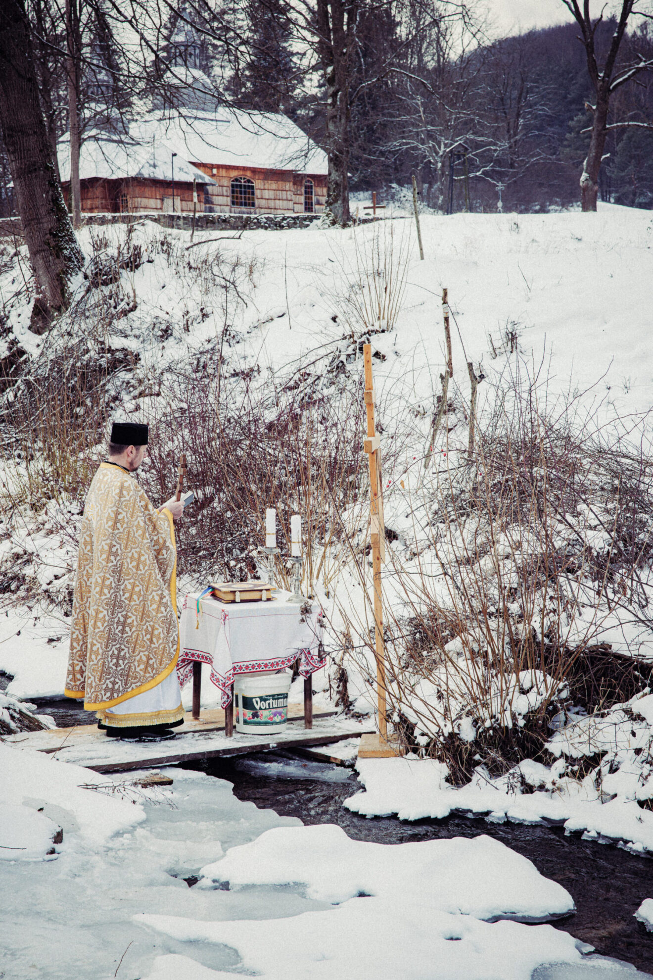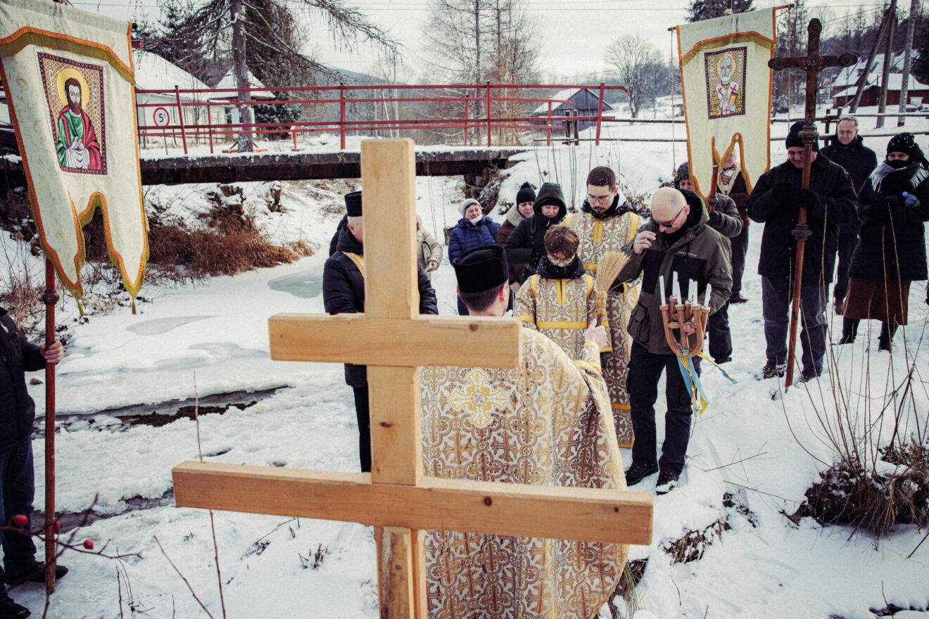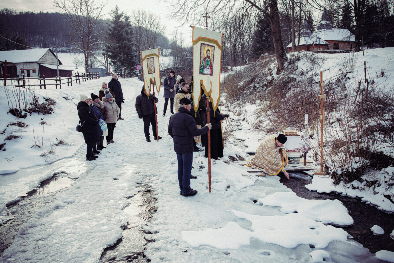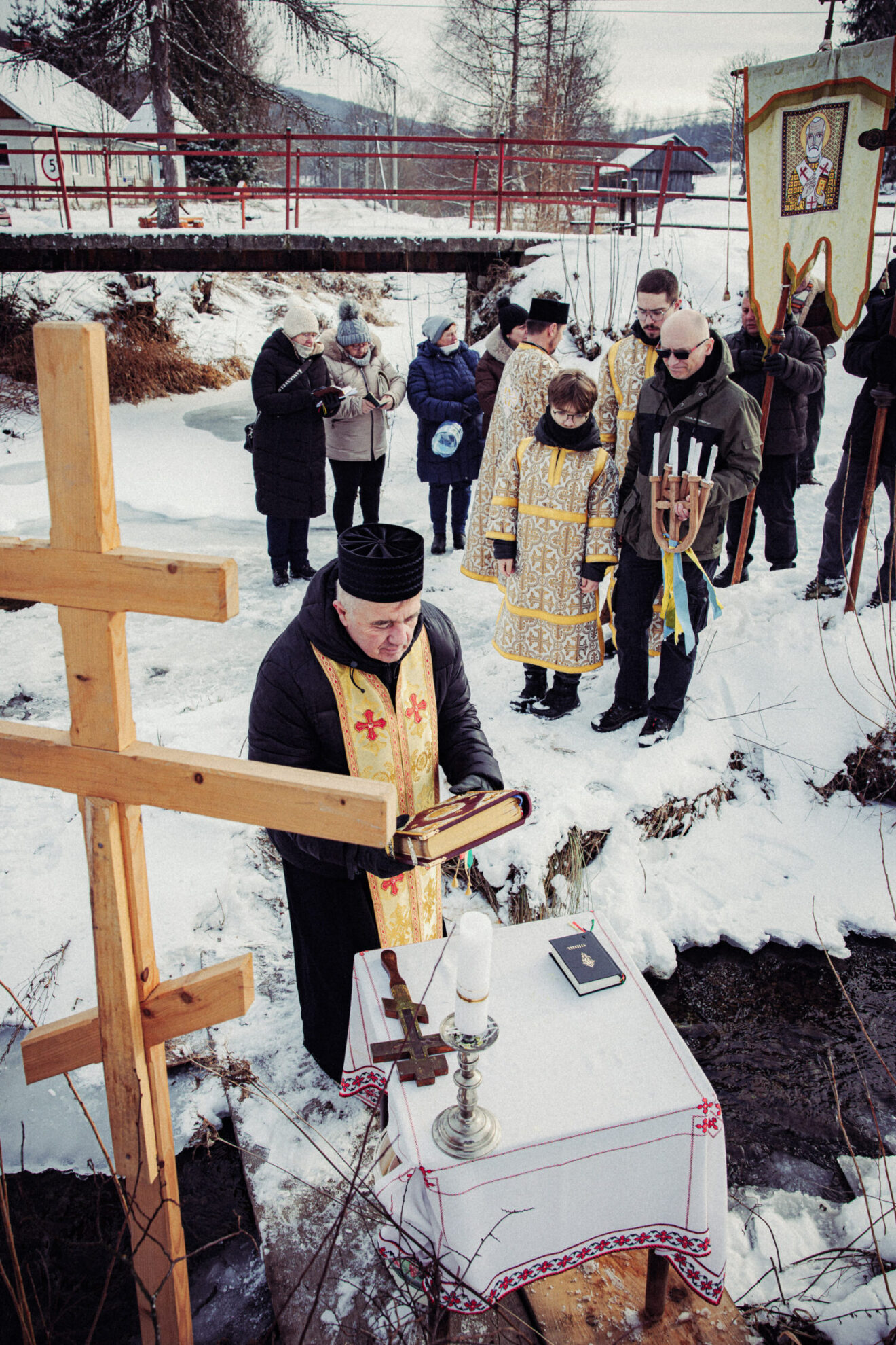 W dniu Objawienia Pańskiego rano odprawiana jest liturgia św. Jana Chryzostoma (poprzedzona jutrznią), a po niej następuje poświęcenie wody, w którym biorą udział wierni. Zgodnie z tradycją obrządku wschodniego w czasie tego święta powinna być poświęcona woda żywa, płynąca w naturalnym środowisku. Gdy rzeka jest zamarznięta, wyrąbują w lodzie przerębel w kształcie krzyża. Obok stawiają krzyż. W przeszłości ozdabiano ołtarz gałązkami jedliny, które potem zabierano do domów jako cenne lekarstwo i ochronę przed złymi duchami.