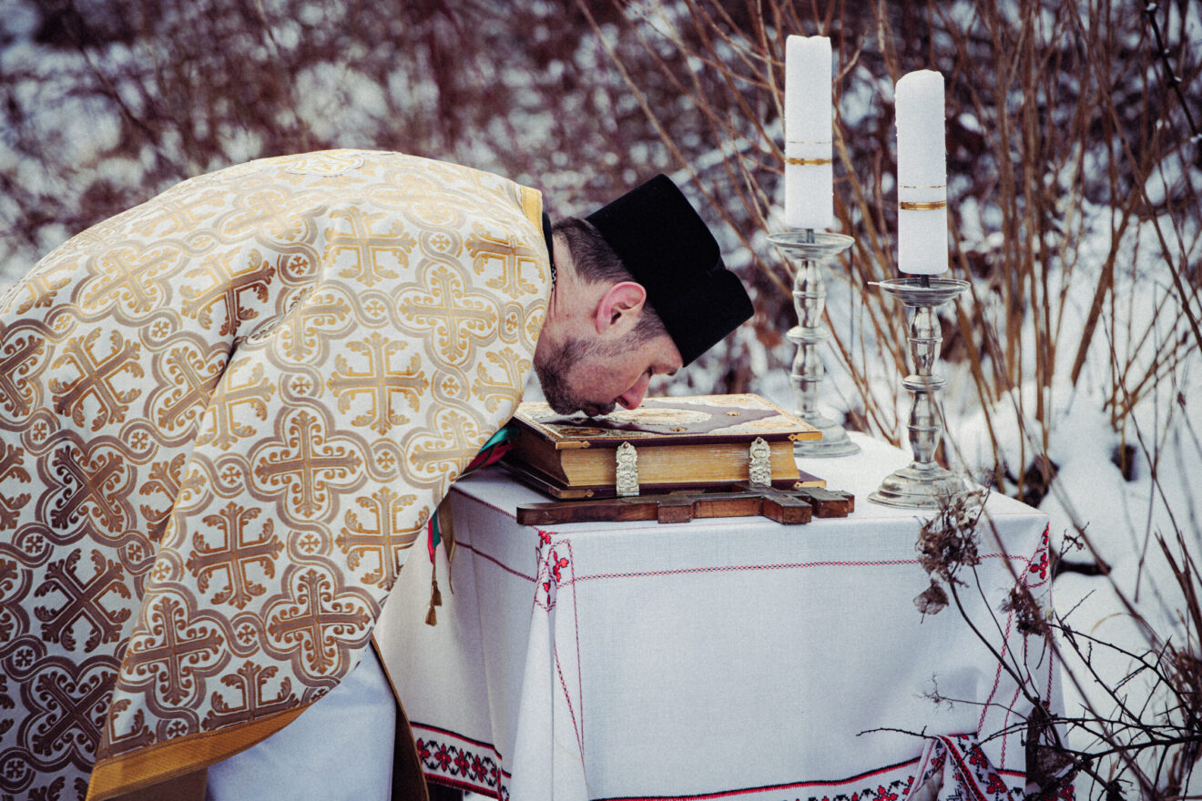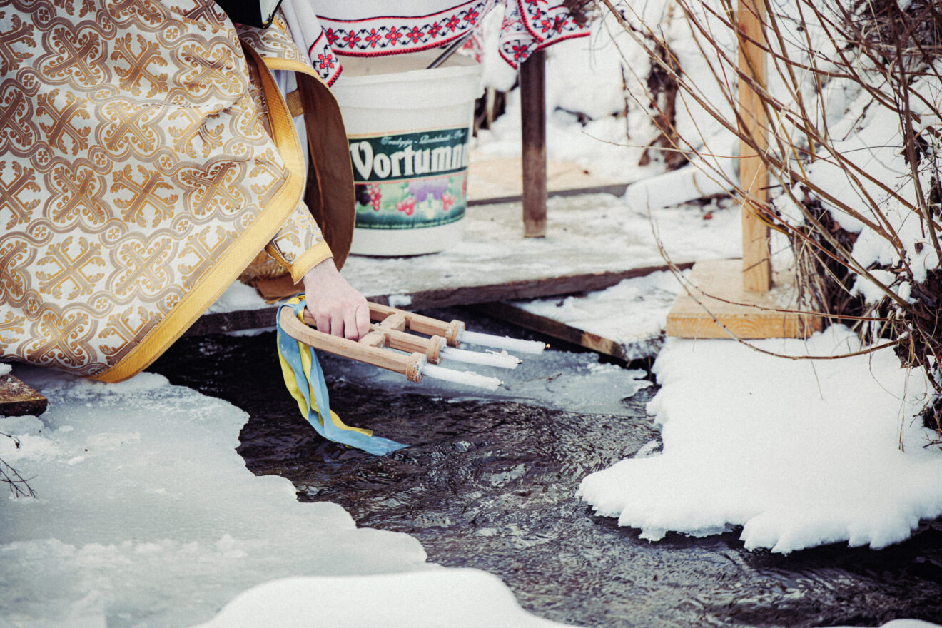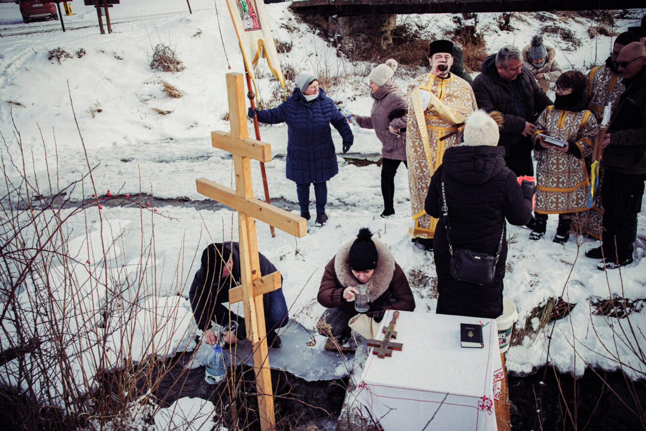 W dniu Objawienia Pańskiego rano odprawiana jest liturgia św. Jana Chryzostoma (poprzedzona jutrznią), a po niej następuje poświęcenie wody, w którym biorą udział wierni. Zgodnie z tradycją obrządku wschodniego w czasie tego święta powinna być poświęcona woda żywa, płynąca w naturalnym środowisku. Gdy rzeka jest zamarznięta, wyrąbują w lodzie przerębel w kształcie krzyża. Obok stawiają krzyż. W przeszłości ozdabiano ołtarz gałązkami jedliny, które potem zabierano do domów jako cenne lekarstwo i ochronę przed złymi duchami.