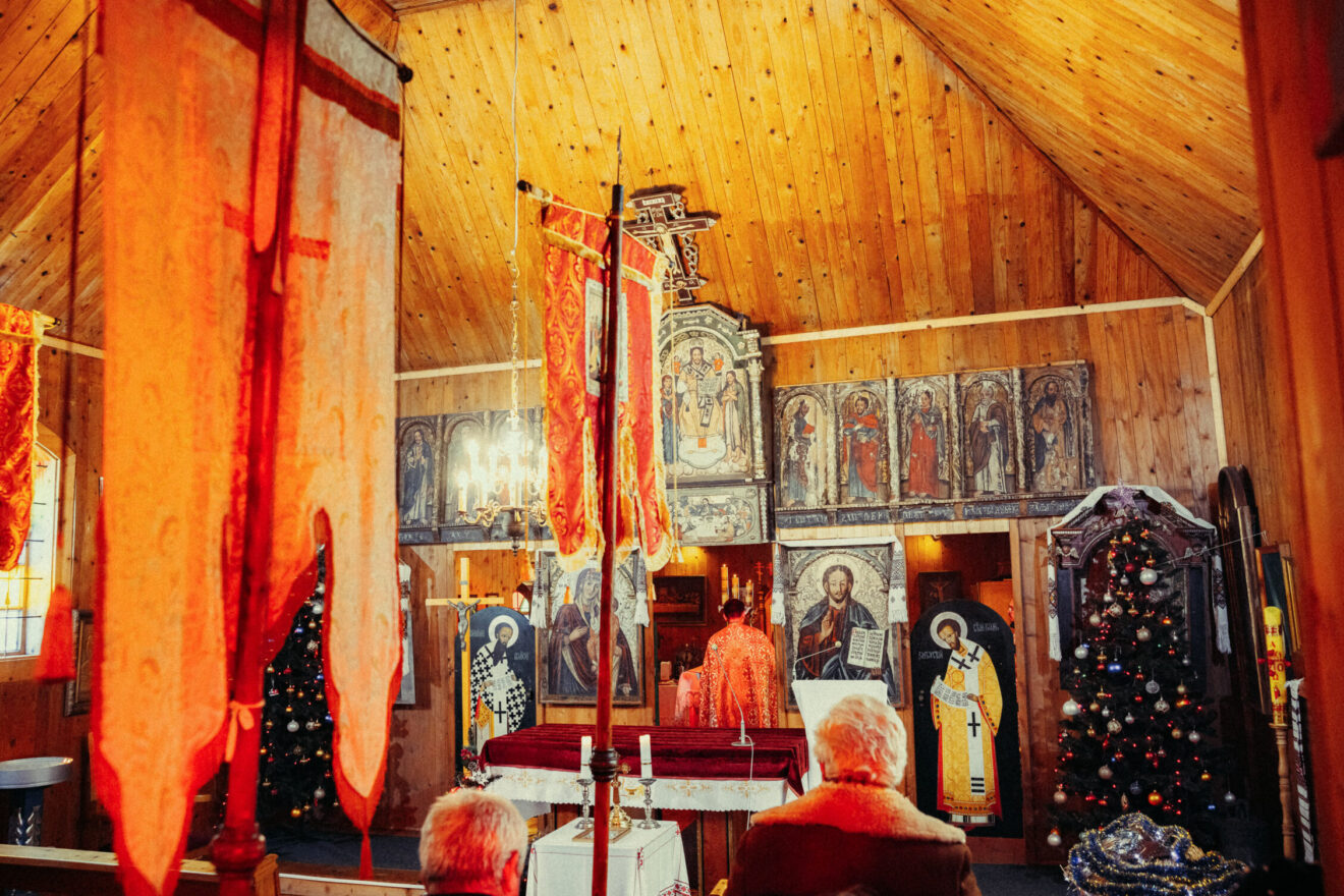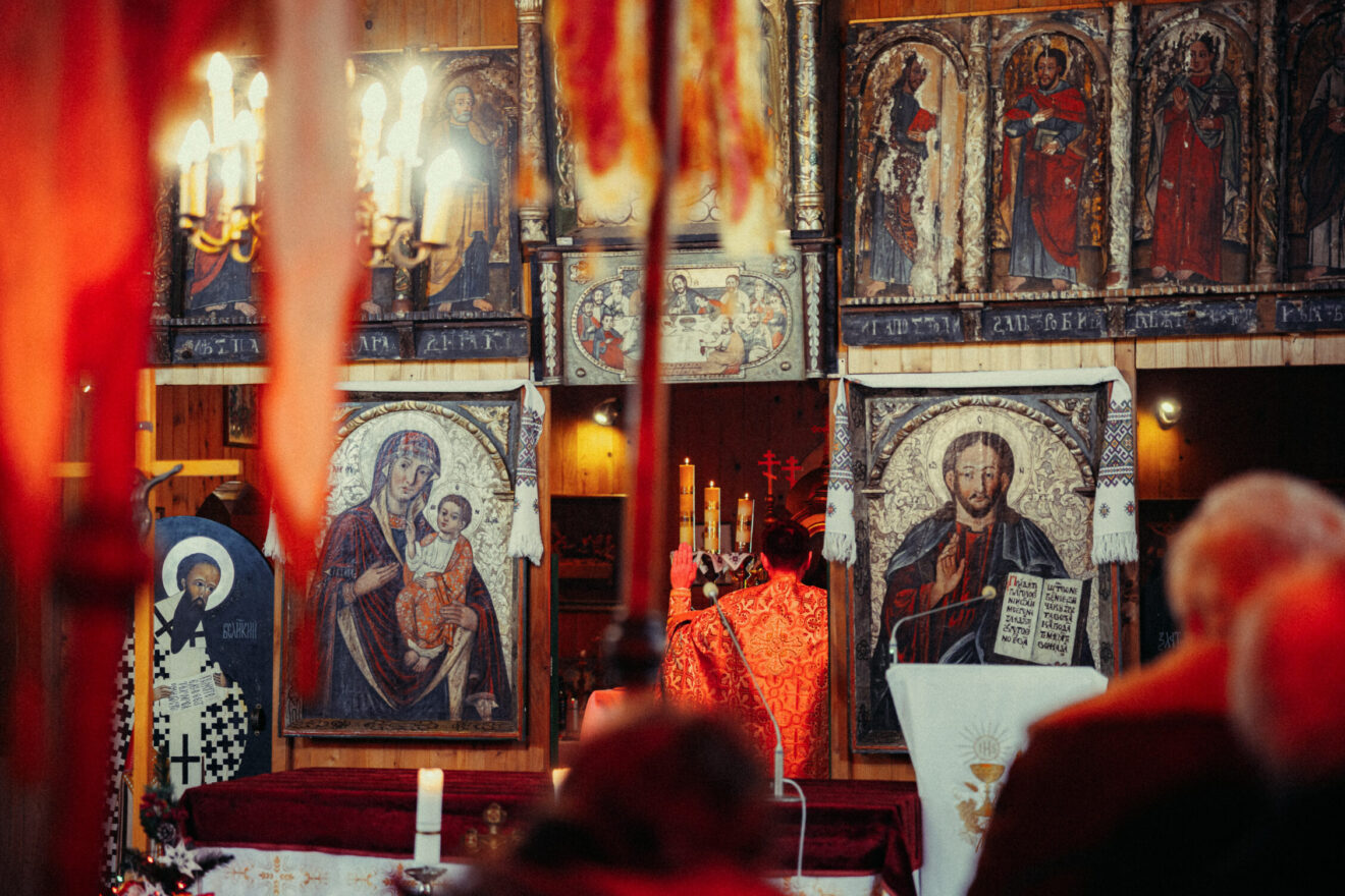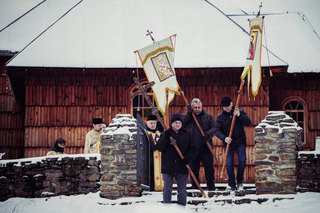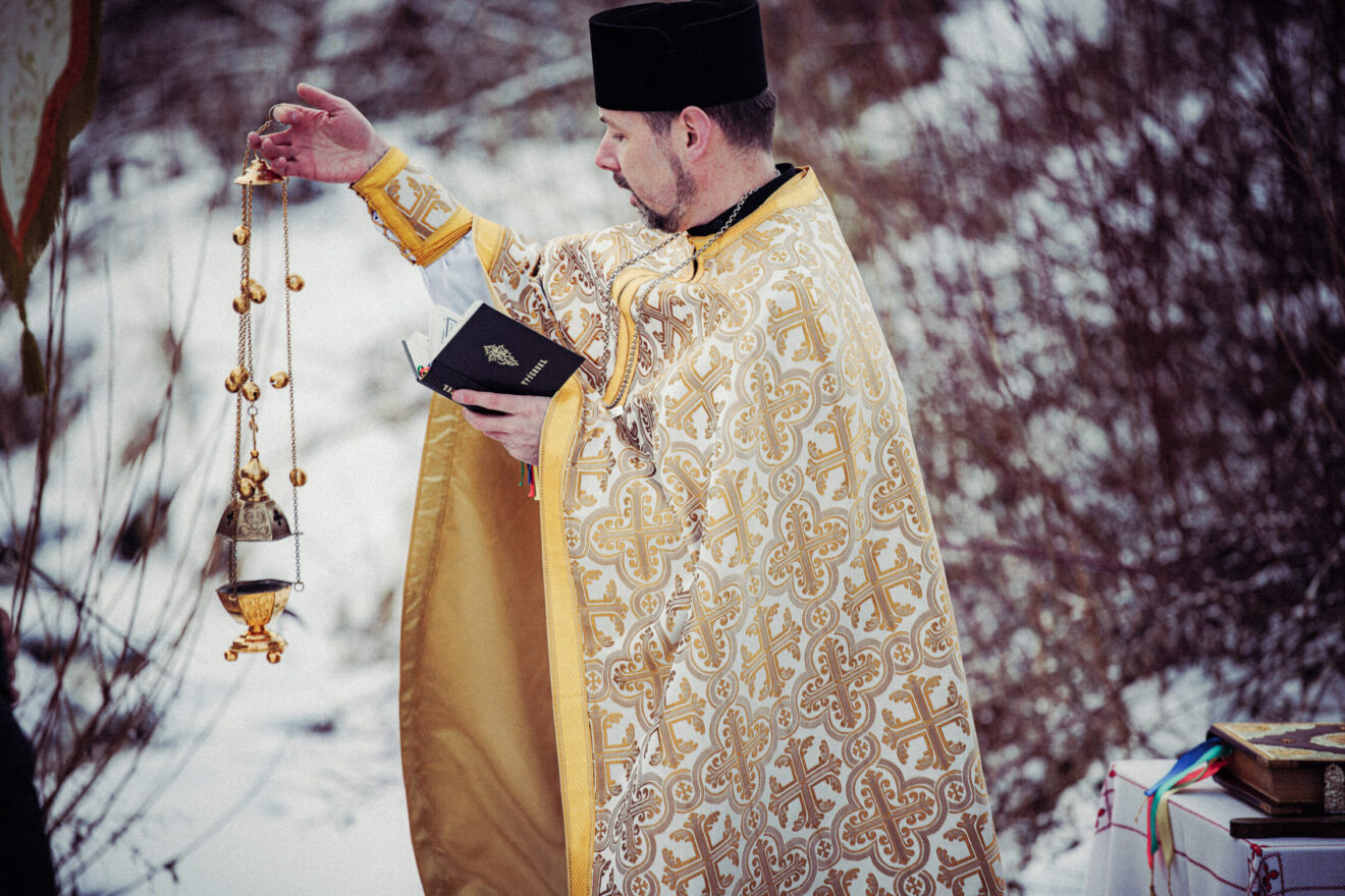 W dniu Objawienia Pańskiego rano odprawiana jest liturgia św. Jana Chryzostoma (poprzedzona jutrznią), a po niej następuje poświęcenie wody, w którym biorą udział wierni. Zgodnie z tradycją obrządku wschodniego w czasie tego święta powinna być poświęcona woda żywa, płynąca w naturalnym środowisku. Gdy rzeka jest zamarznięta, wyrąbują w lodzie przerębel w kształcie krzyża. Obok stawiają krzyż. W przeszłości ozdabiano ołtarz gałązkami jedliny, które potem zabierano do domów jako cenne lekarstwo i ochronę przed złymi duchami.