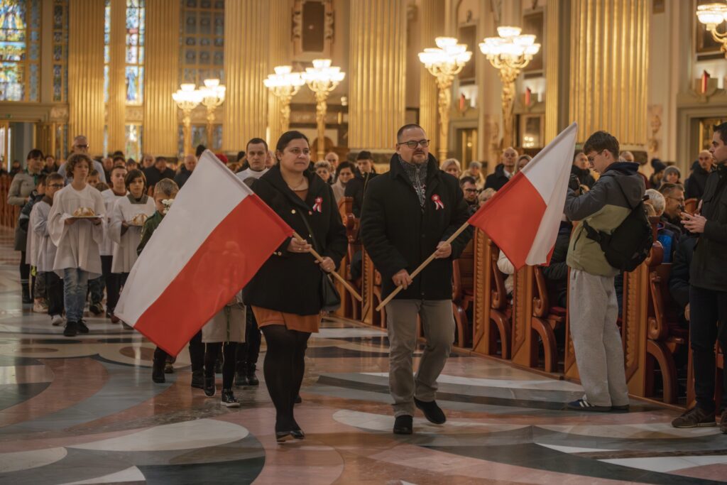 „Chcemy przeżyć ten dzień w łączności z Bogiem, powierzając dobro naszej Ojczyzny wstawiennictwu Maryi, prosząc Ją, aby wypraszała nam wszystkim pokój i zgodę, abyśmy we właściwy sposób wykorzystywali dar wolności i niepodległości” – podkreślał we wstępie do Mszy św. ks. Sławomir Homoncik MIC. Zachęcił również „byśmy budowali wierność wartościom patriotycznym na Panu Bogu, byli dumni z tego, że jesteśmy Polakami i potrafili, jeśli trzeba, rezygnować z własnego «ja» dla Polski”.