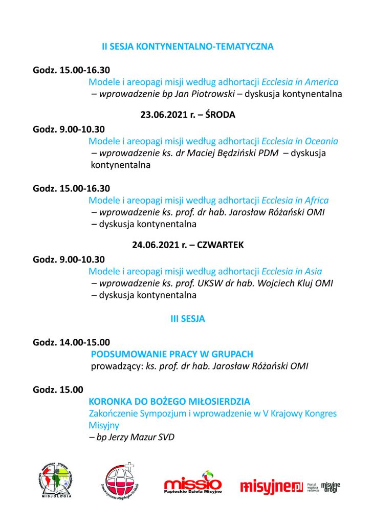 Sympozjum potrwa trzy dni. Wśród prelegentów, prezentujących nowe realia misyjne na wszystkich kontynentach znajdą się m. innymi bp Jan Piotrowski, abp Tadeusz Wojda SAC, a także ks. prof. Tomasz Szyszka SVD, o. dr Ryszard Szmydki OMI, ks. dr Maciej Będziński, ks. prof. Wojciech Kluj OMI oraz ks. prof. Jarosław Różański OMI.