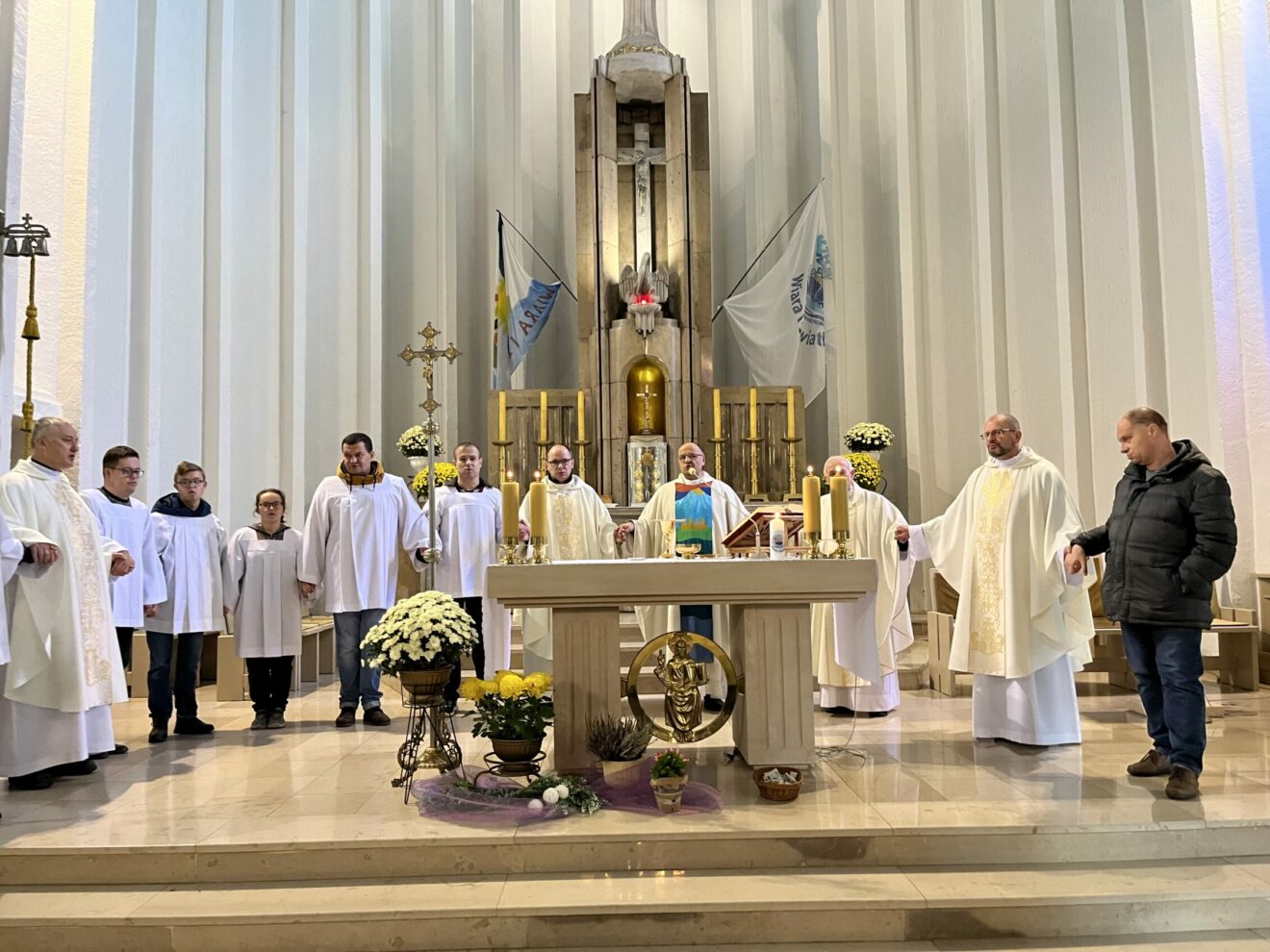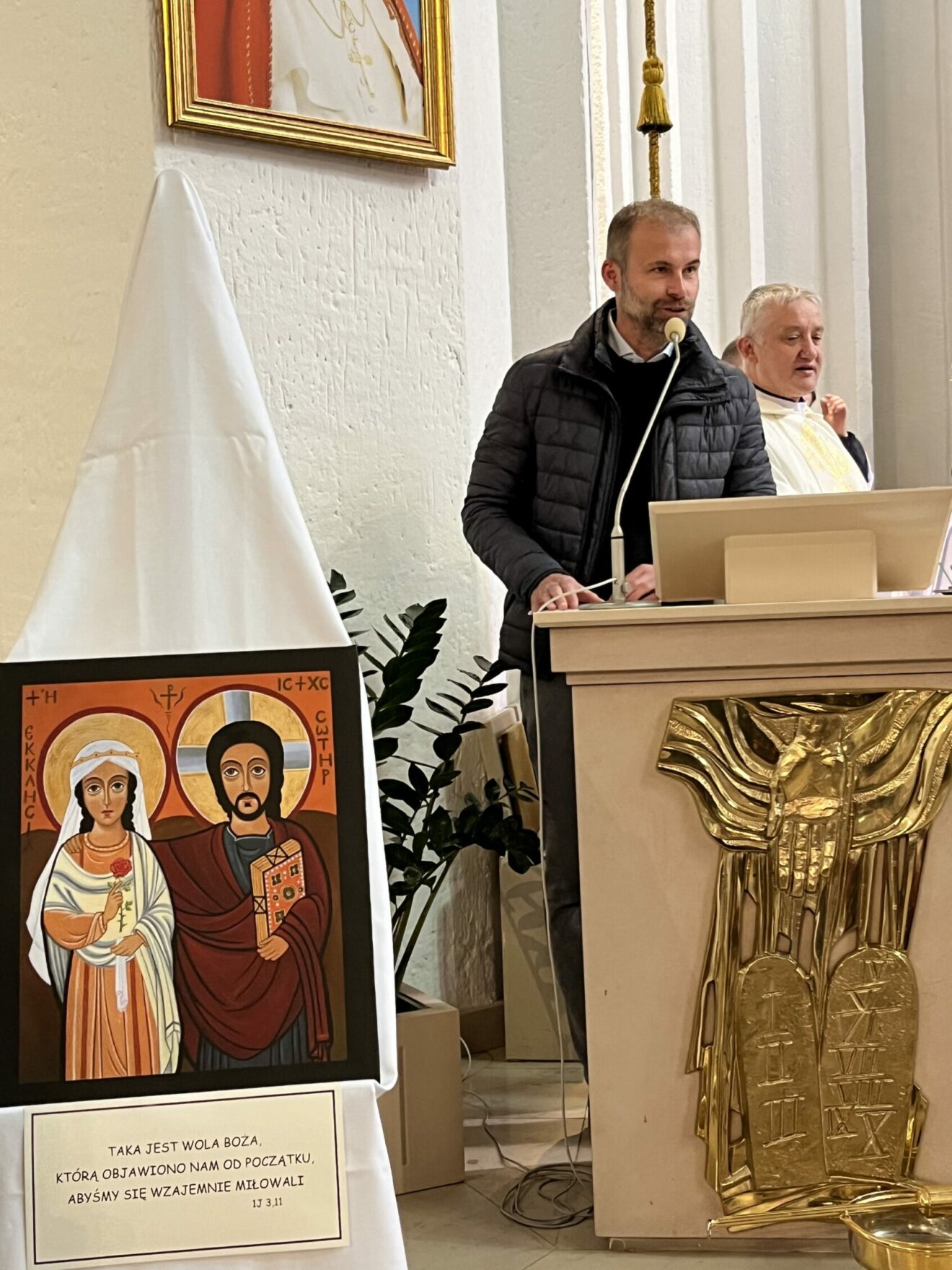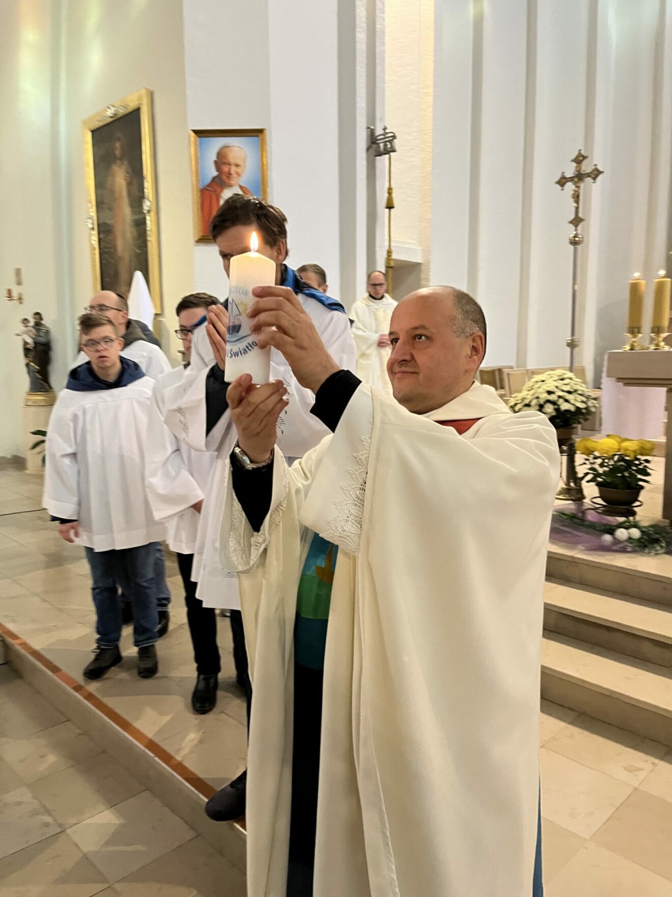 W atmosferze spontanicznej radości towarzyszącej zawsze spotkaniom i liturgiom z udziałem osób z niepełnosprawnością intelektualną poświecono w trakcie Mszy św. „Ikonę Przyjaźni Chrystusa i Kościoła”, przedstawiającą Jezusa obejmującego swoją oblubienicę Kościół. Ikona ta, namalowana przez siostrę z Karmelu Miłości Miłosiernej w Szczecinie nawiązuje do znanej ikony „Jezus i Przyjaciel”. Jednak tutaj Jezus obejmuje i podtrzymuje kobietę trzymającą w ręku różę – cierpiącą Ecclesię. Obraz ten też wymownie podkreślał specyficzne miejsce wspólnot Wiara i Światło w Kościele. Ich istotą jest właśnie przyjaźń z osobą cierpiącą.