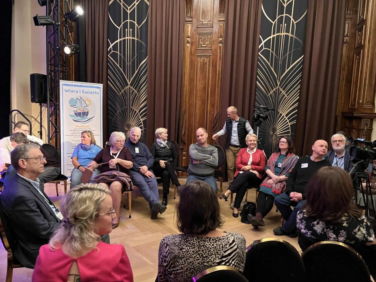 Druga część spotkania odbyła się w znajdującej się nieopodal zabytkowej, odnowionej niedawno Willi Lentza. Ten XIX- wieczny budynek – z rozmachem wybudowany przez niemieckiego fabrykanta Augusta Lentza – po remoncie stal się inspirującym miejscem wydarzeń kulturalnych spod miana “kultury wysokiej”. Tym razem w jej progach, gościł Zespół Piosenki Naiwnej. Jest to amatorska grupa artystyczna założona przez Arkadiusza Więcko w 2005 r., w której głównymi solistami są osoby z niepełnosprawnością intelektualną wywodzące się ze wspólnoty „WiŚ”. Autorskie piosenki w wykonaniu zespołu wprowadziły uczestników spotkania w klimat spontanicznego dzielenia się swoimi doświadczeniami i przemyśleniami związanymi z uczestnictwem w Ruchu Wiara i Światło.