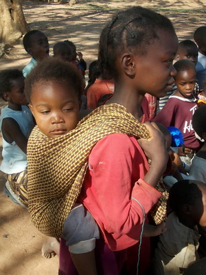 Tutaj w Zambii, w Mansie, dzieci jest dużo. Zarówno noworodków, jak i tych starszych. Jednak życie jest prostsze. Ta prostota sprawia, że często jest ono również piękniejsze. Odkąd tu pracuję, nie spotkałam jeszcze wózka dla dzieci. Kobieta łowi ryby, gotuje, sprząta, pracuje w polu, zawsze z dzieckiem przy sobie. Maluszki noszone są w chuście. Najczęściej na plecach, ale również z przodu. Tym materiałem jest chitenga. Można znaleźć chitengi z różnych materiałów – lepszych i gorszych, różnokolorowych, w bogate wzory. Nie są zbyt drogie, a każda jest dobra do noszenia dziecka.