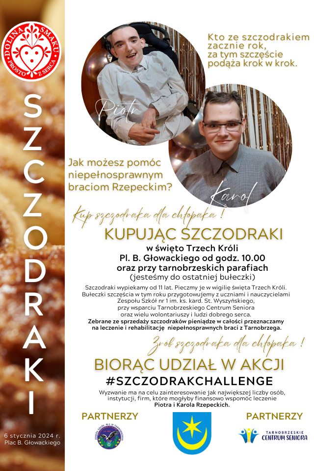 Od 11 lat Dolina Smaku sprzedaje szczodraki na leczenie i rehabilitację braci. W tym roku po raz pierwszy do wydarzenia włącza się społeczność Zespołu Szkół nr 1 im. ks. kard. S. Wyszyńskiego w Tarnobrzegu, której uczniem jest młodszy z braci – Karol.